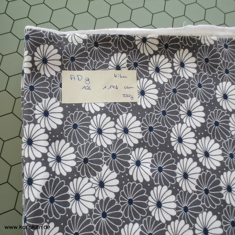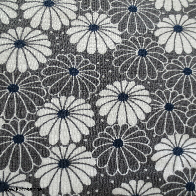 unbenutzter neuer Baumwoll Jersey Chrysanthemen auf grau OjuTie Kids Collection