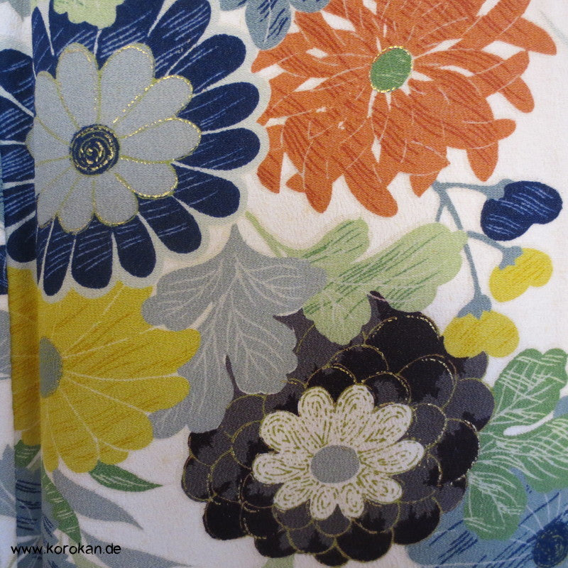 Chysanthemen, wenig Gold Seidencrepe Komon Kimono