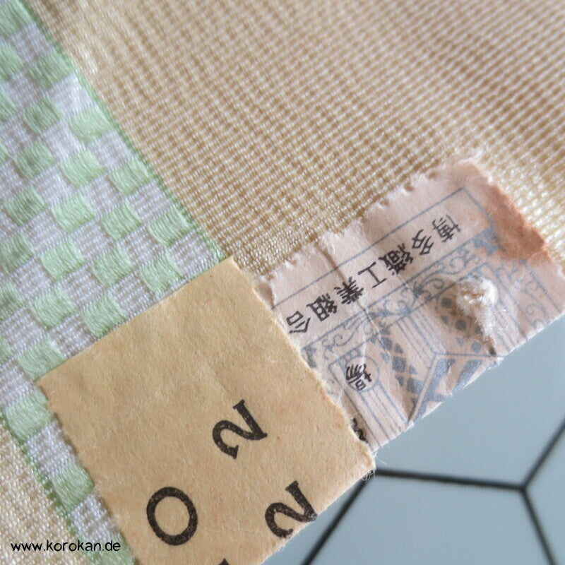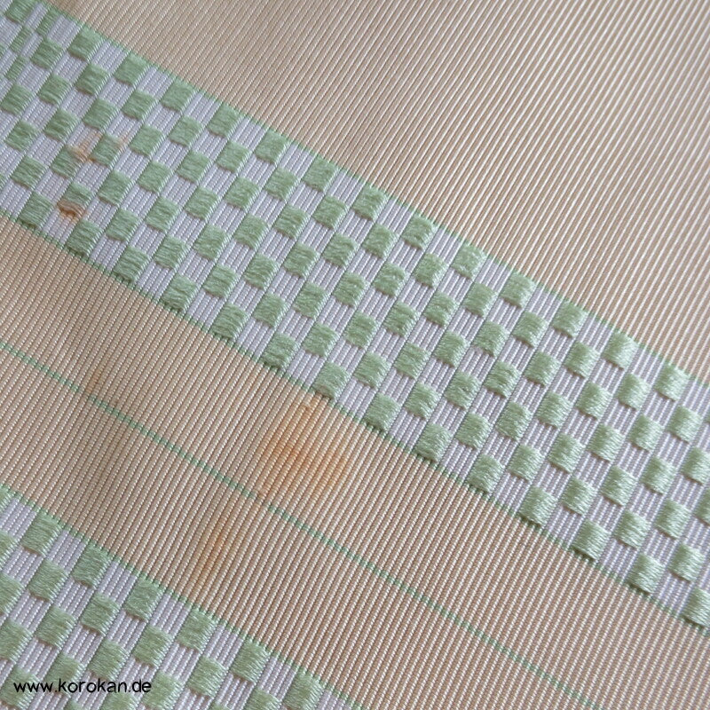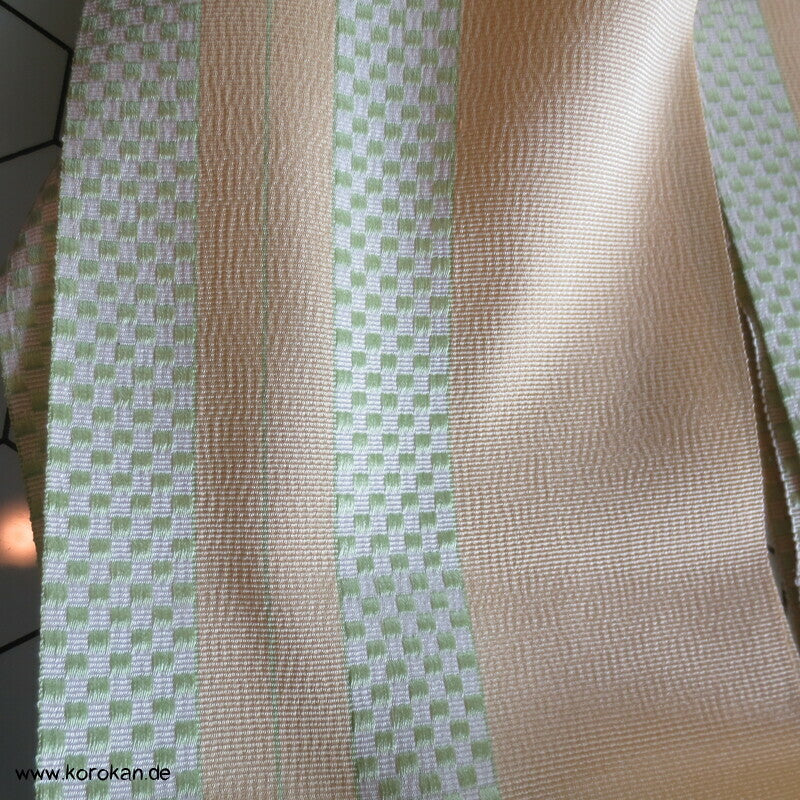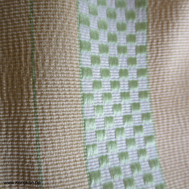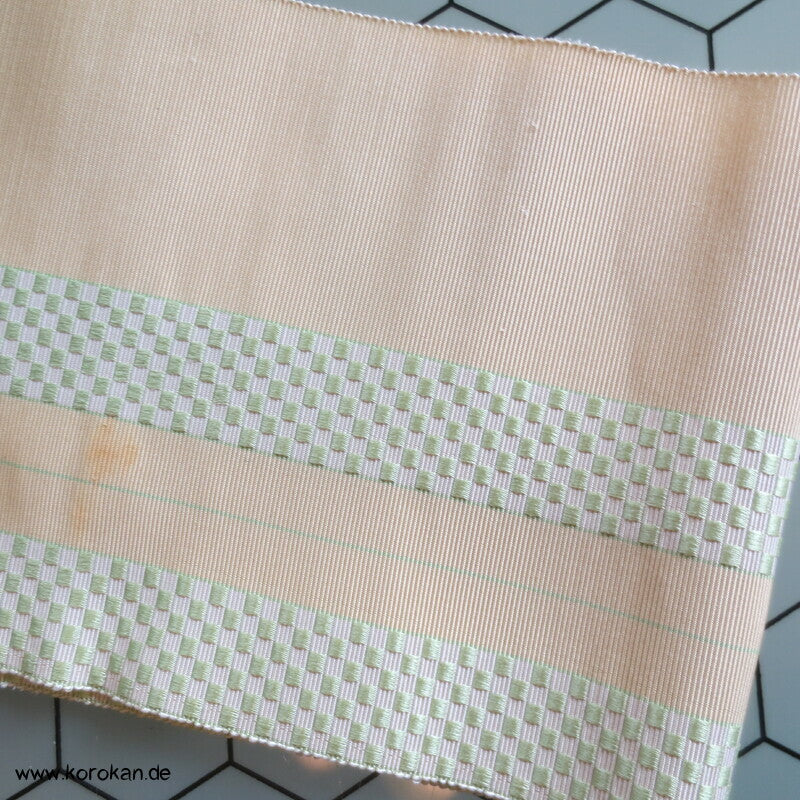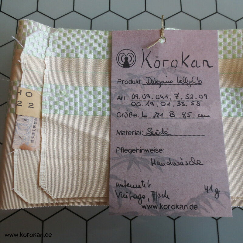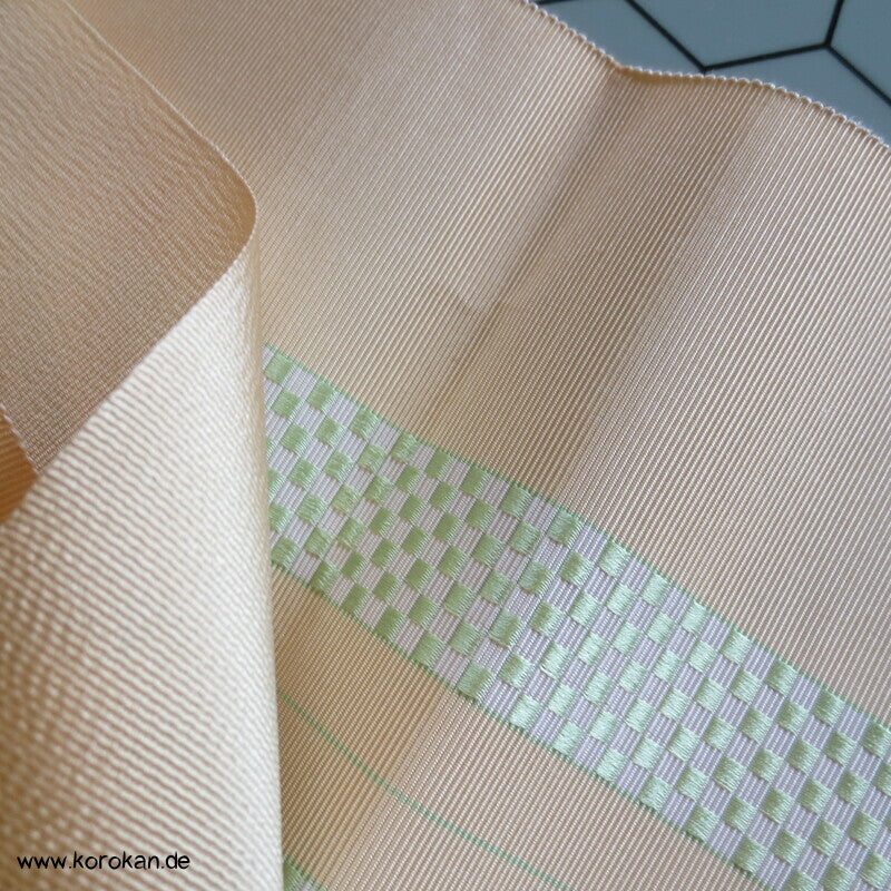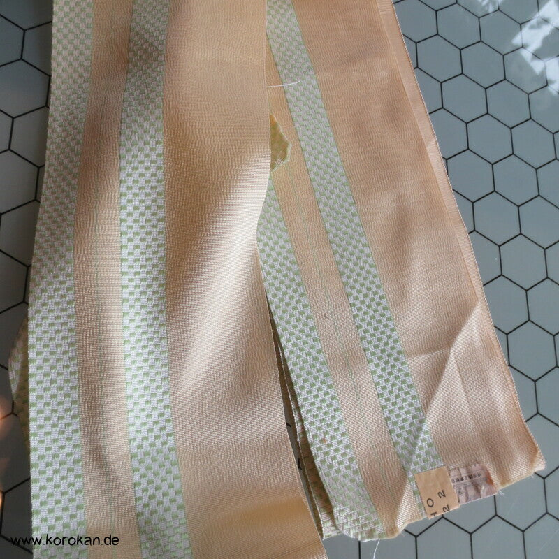 Vintage unbenutzter Datejime Kimono Bindeband - hellgelb mit jadegrünen Karostreifen