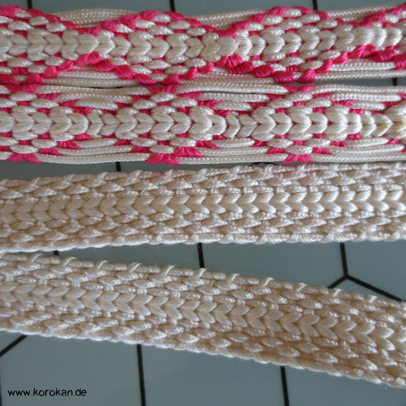 Vintage durchbrochen geflochtener Sommer Obijime, weiß pink mit Diamantrautenmotiv