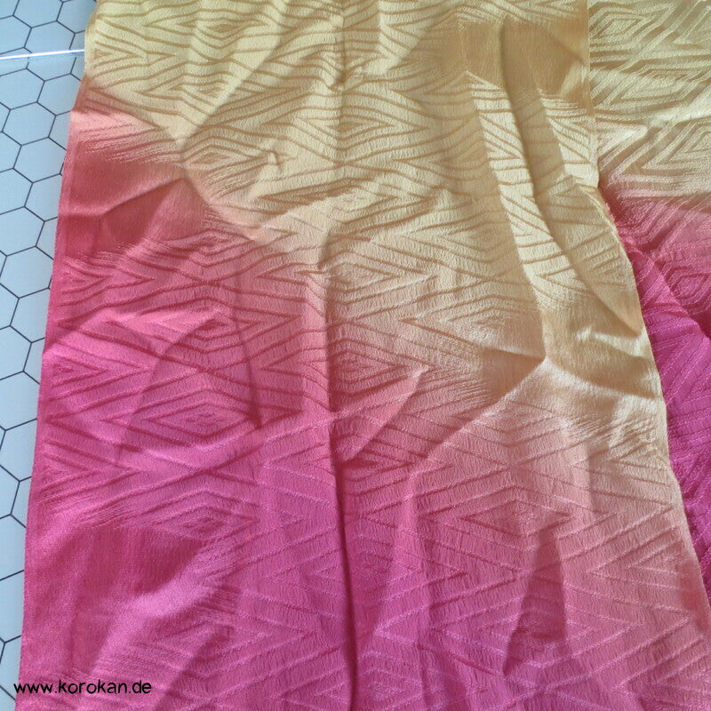 Vintage Obiage Diamantrauten Damast Seide, Farbverlauf zwischen messinggelb und rosenrot