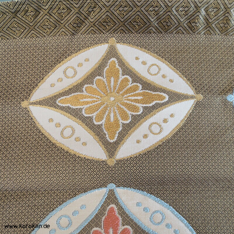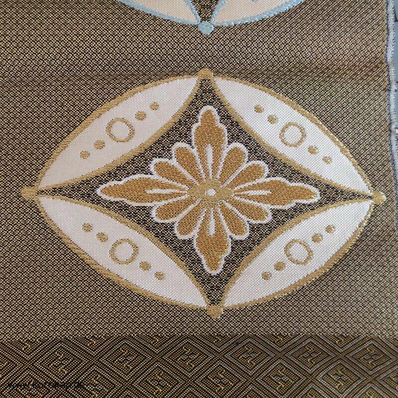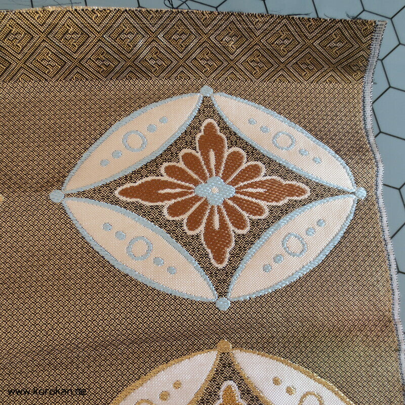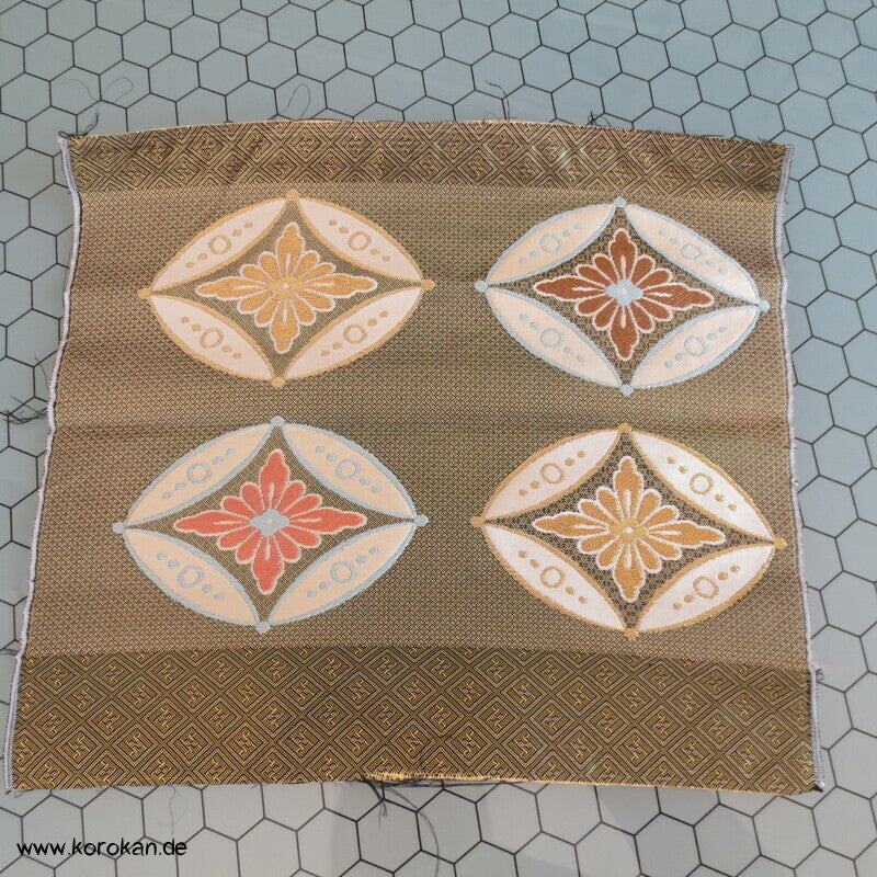 Vintage unbenutzes Seiden Brokat Panel in Obi Breite, wohl als Muster für einen Obi, wohl eher für Tempelzwecke als für Bekleidungszwecke gewebt