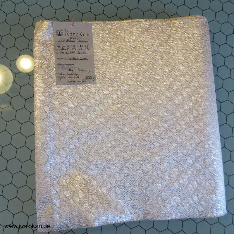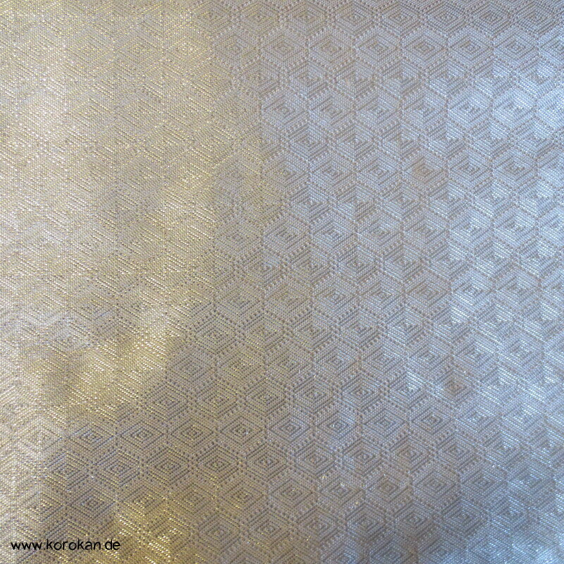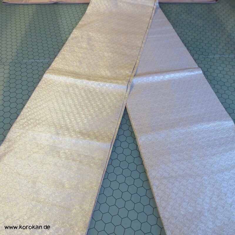 Vintage Maru Obi Seidenbrokat beidseitig voll glänzender Diamantrautenmuster in silber