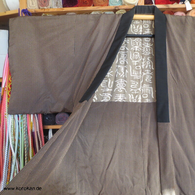 Vintage japanische, dick mit Seide gepolsterte Hanten Kimono Jacke, dezent gestreift, insofern unisex, original wohl für Männer gedacht