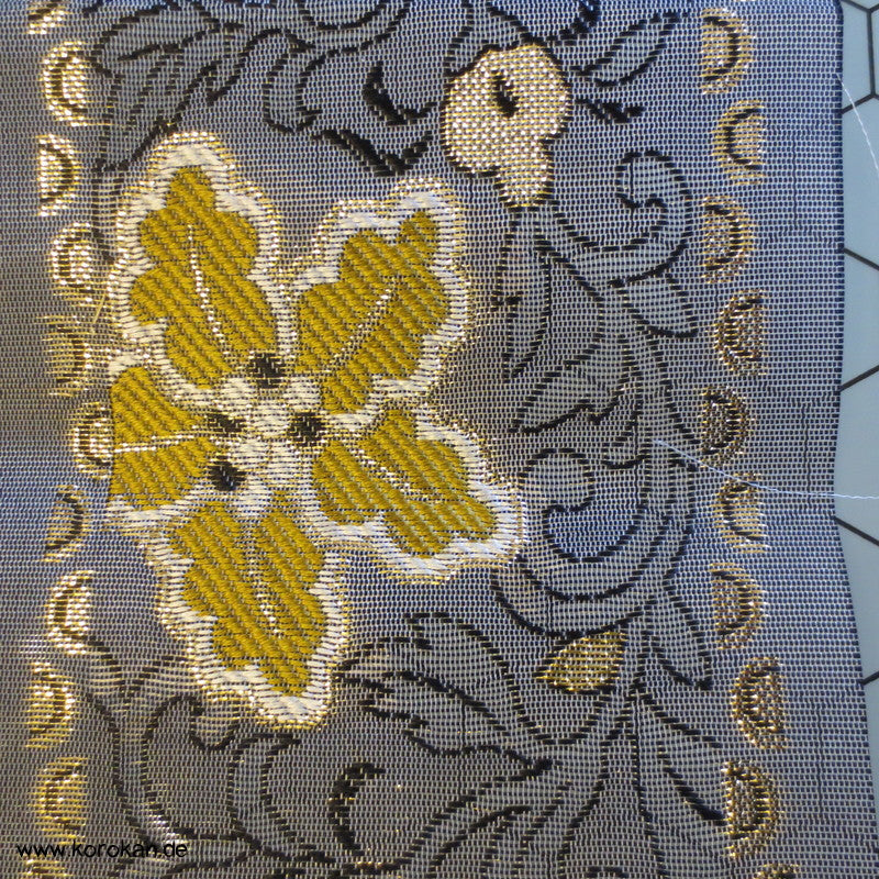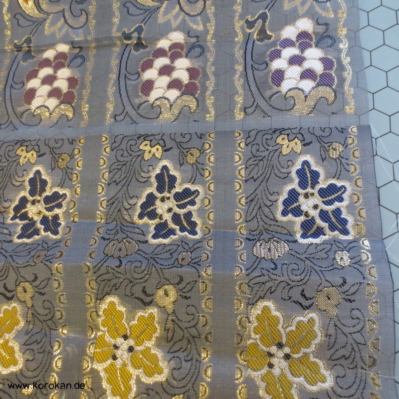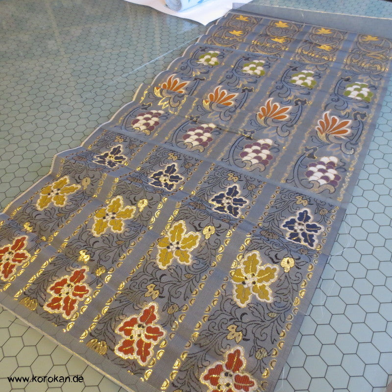 Vintage unbenutzer Seiden Brokat Rest Blütenarabesken in Streifen, wohl eher für Wagesa Stolen für Tempelzwecke als für Bekleidungszwecke gewebt