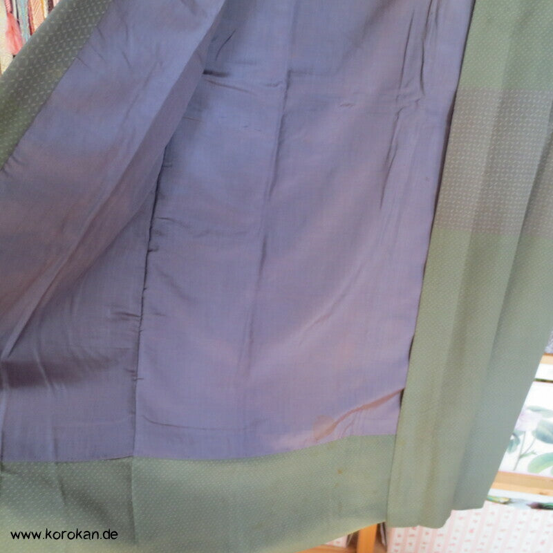 Vintage, eher antiker Männer Juban Unter Kimono, Farbverlauf Seidencrepe mit einem handgemalten Drachen Motiv im Rücken, voll gefüttert mit blassblaugrauer Seide und einem ehemals schwarzblauen Ripskragen.