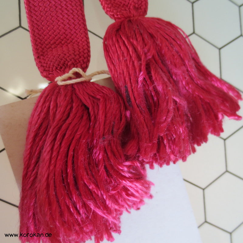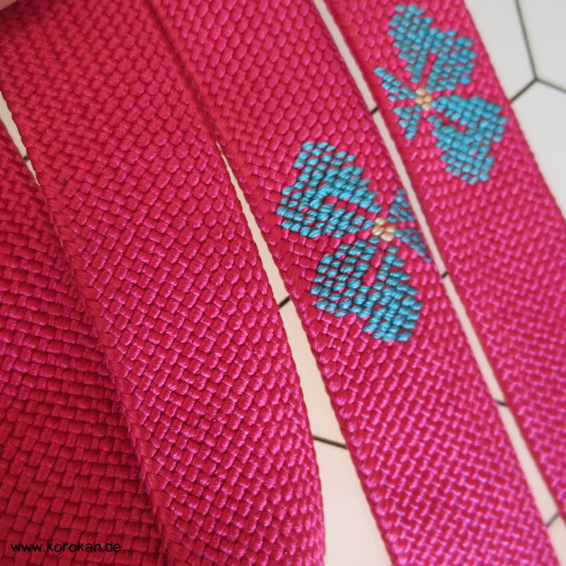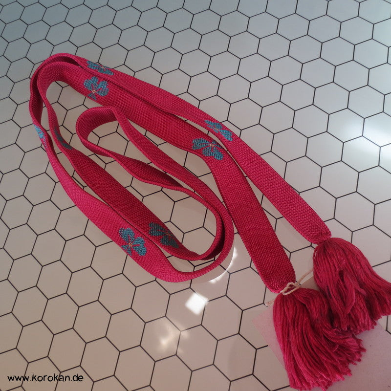 dunkel - pink, mit türkisen Blumen Obijime, antik