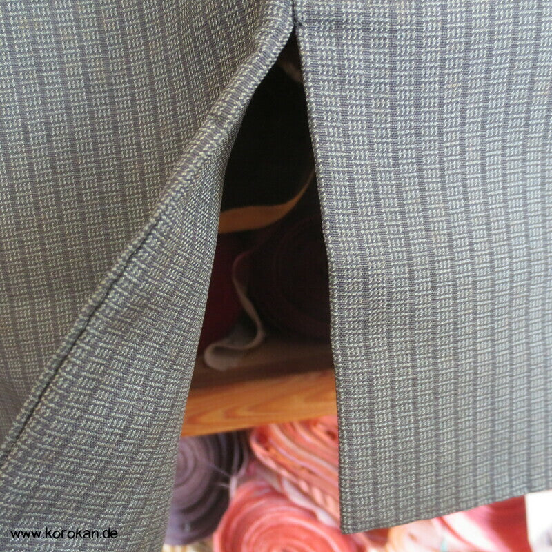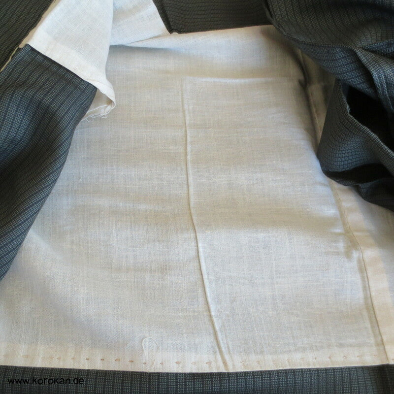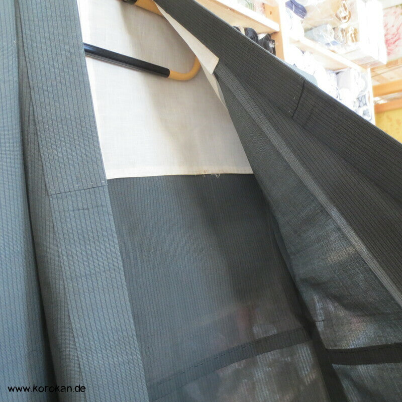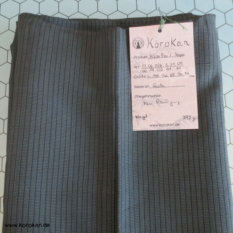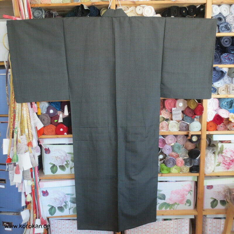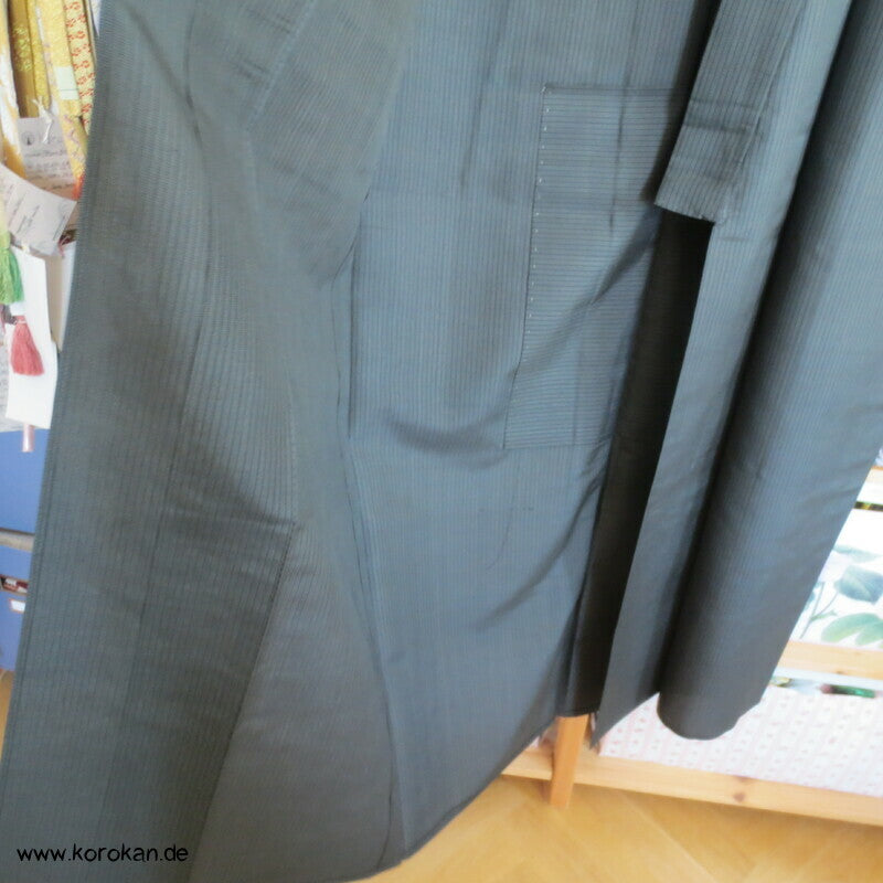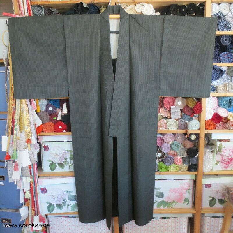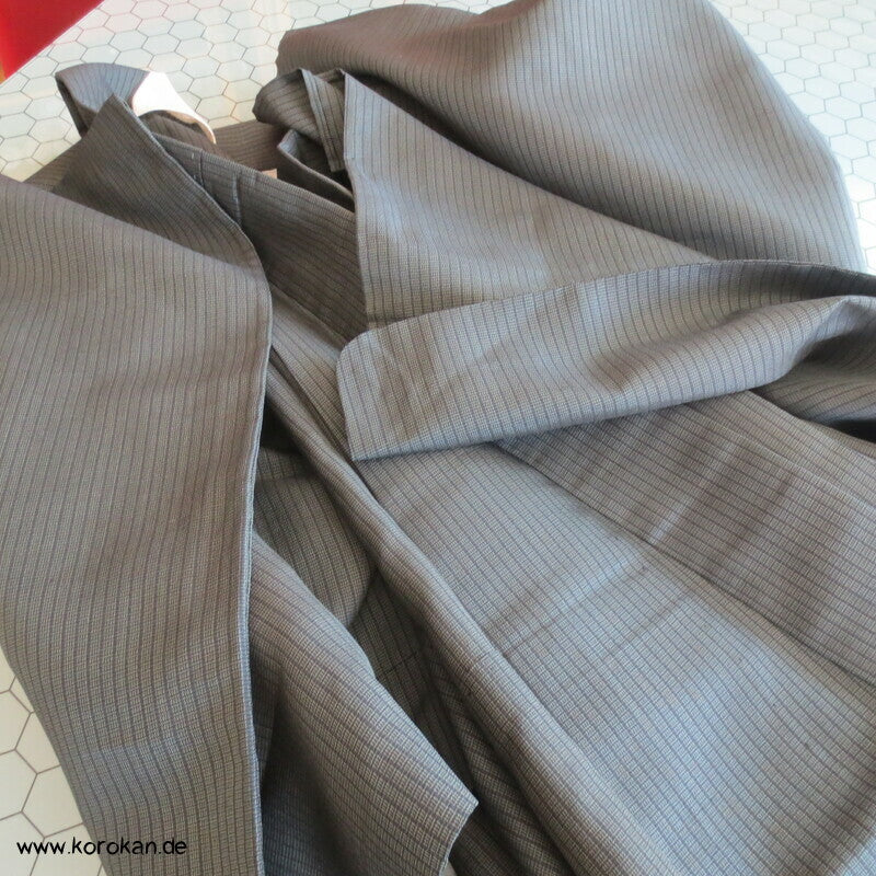 Vintage japanischer Männer Seide Hitoe Kimono feingestreift in schwarz / grau