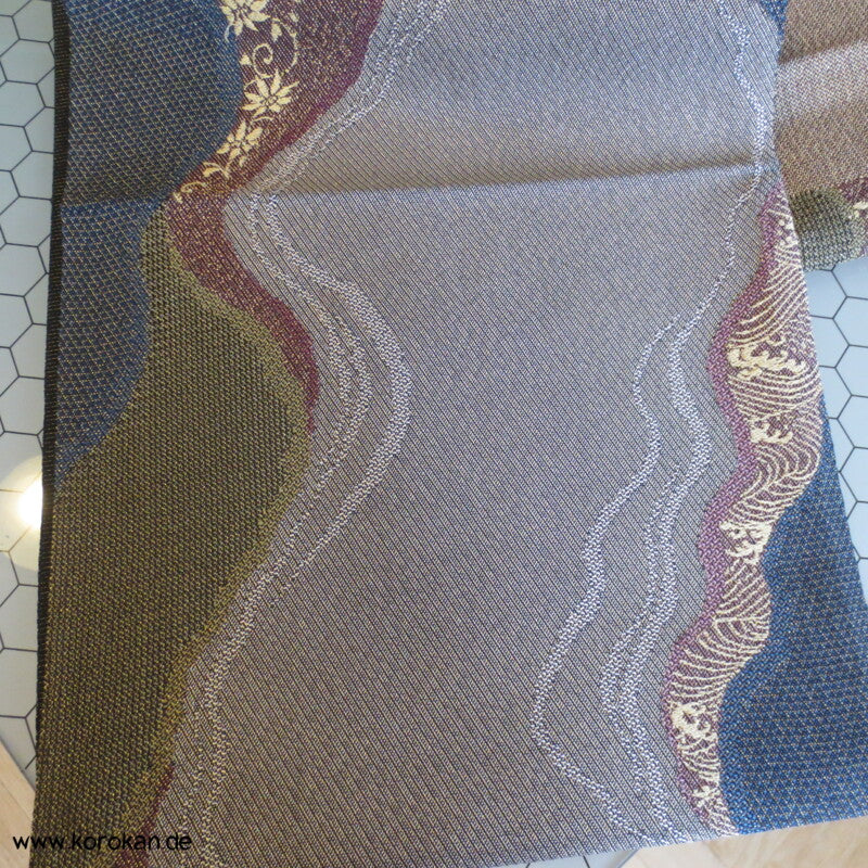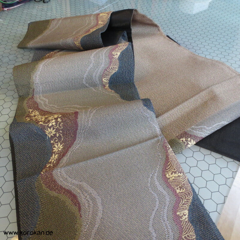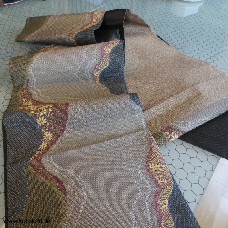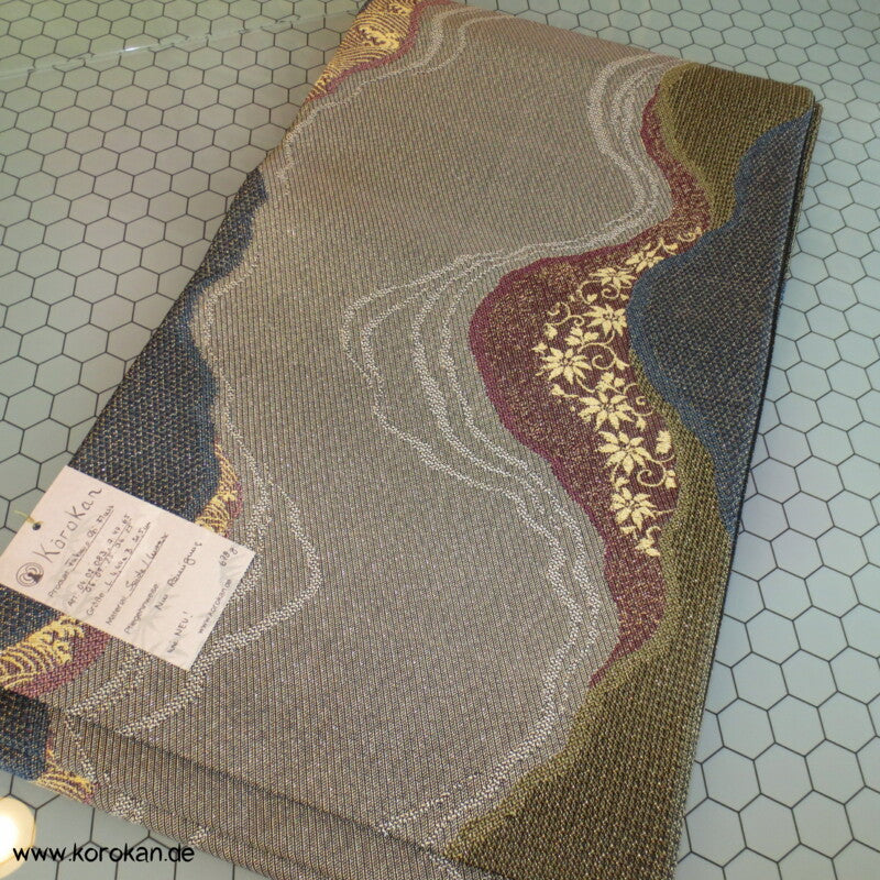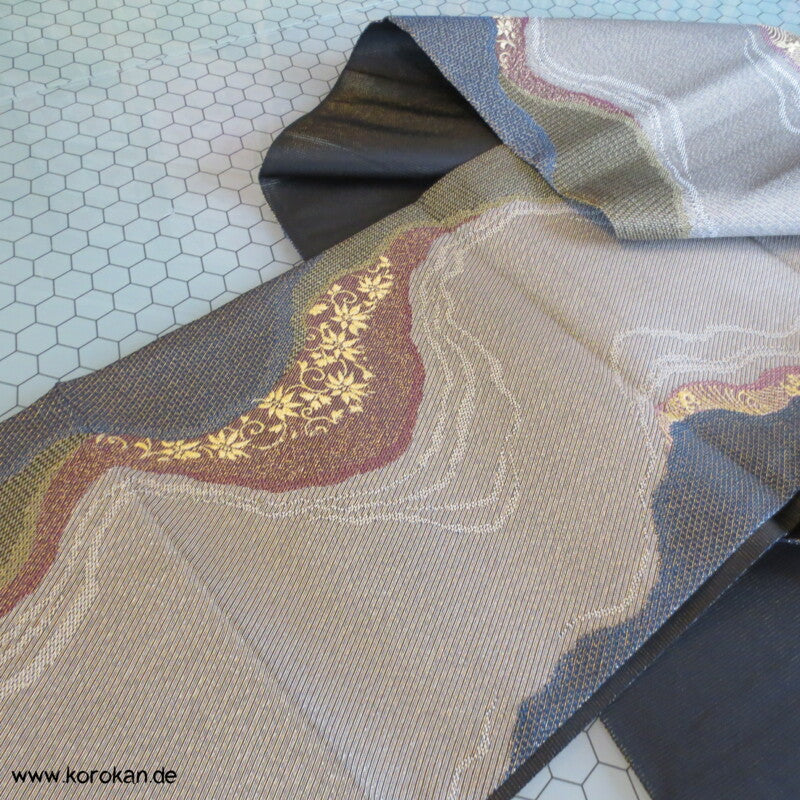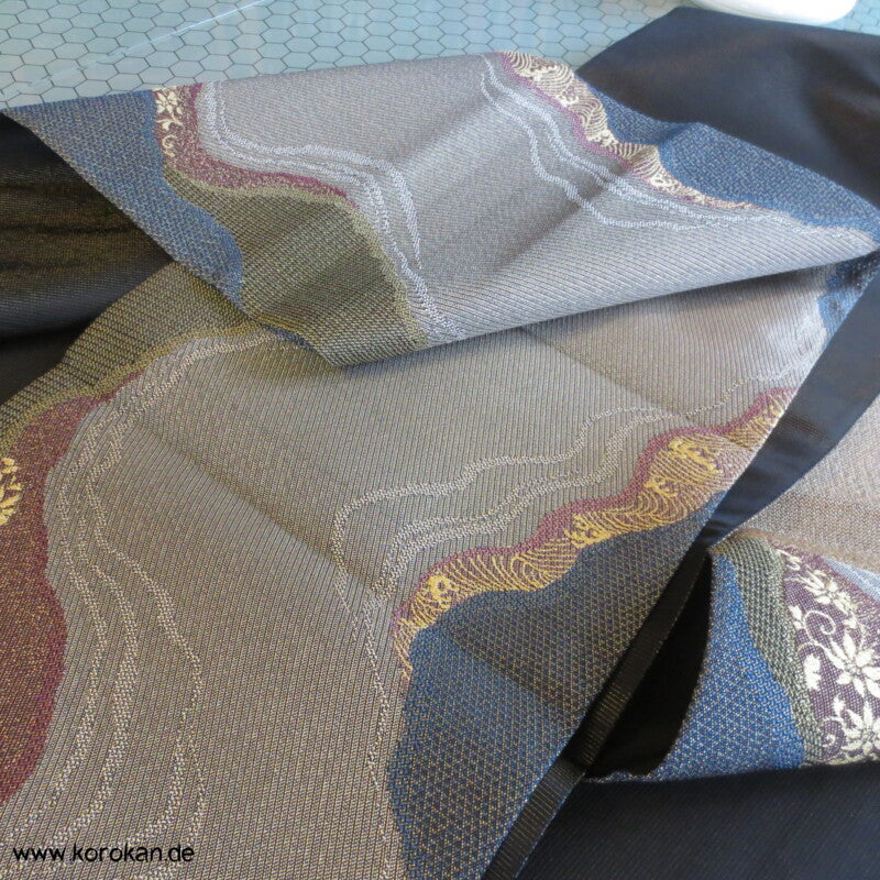 dunkler Fluss Brokat Fukuro Obi Seidenbrokat Kimonogürtel