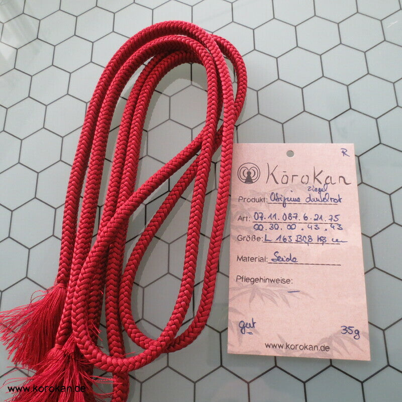japanischer Flecht Seiden Obijime dunkel ziegelrote Vierkant Flechtung