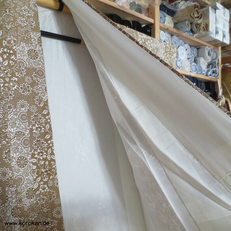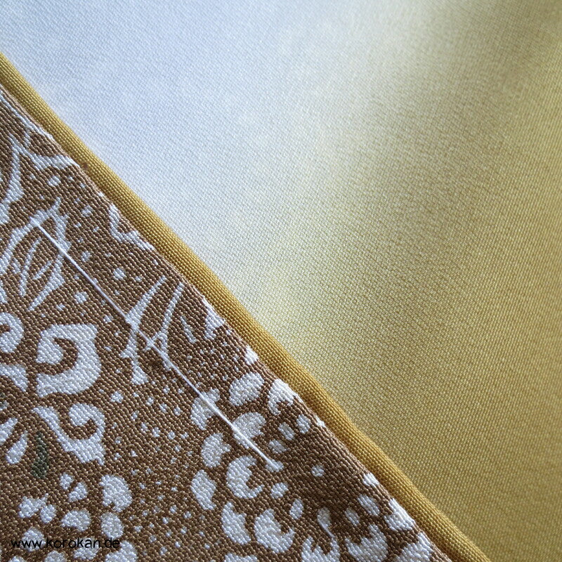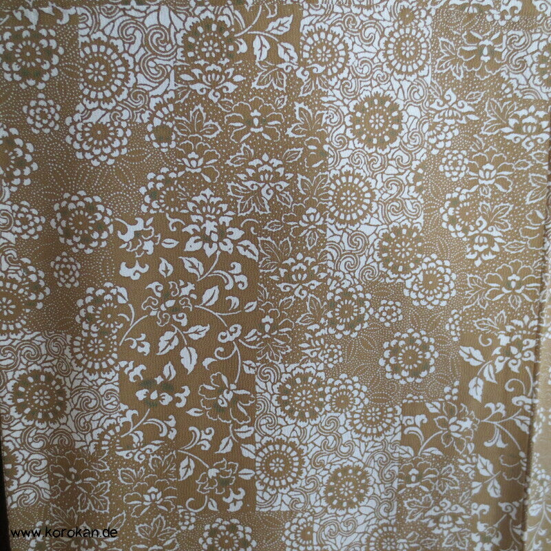 Vintage, eher antiker Komon Kimono kleine und große Edo Komon Blüten auf Chirimen Seidencrepe, oberen hellen Seiden Futter und unterem Hakkake Futter Seidencrepe mit Bokashi Verlaufsrand