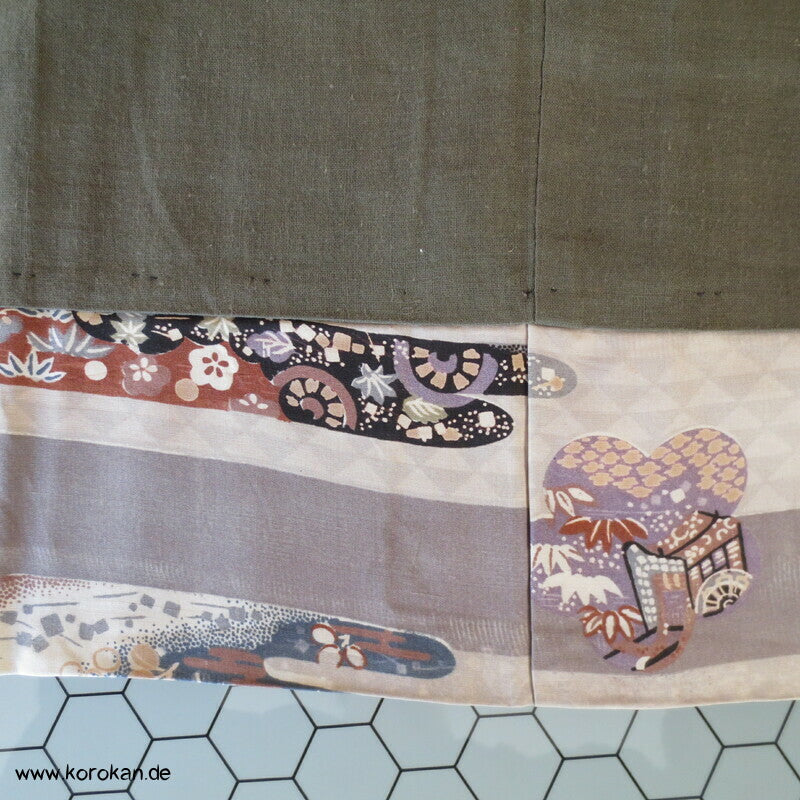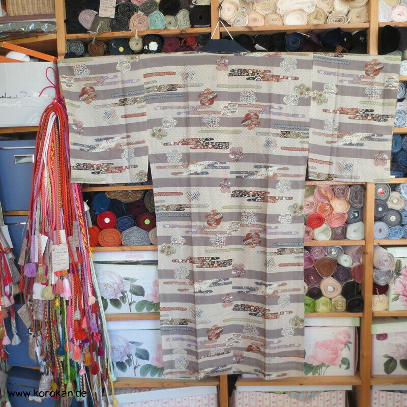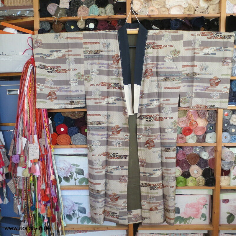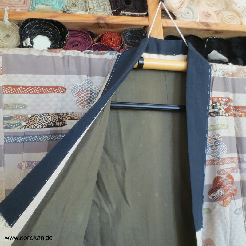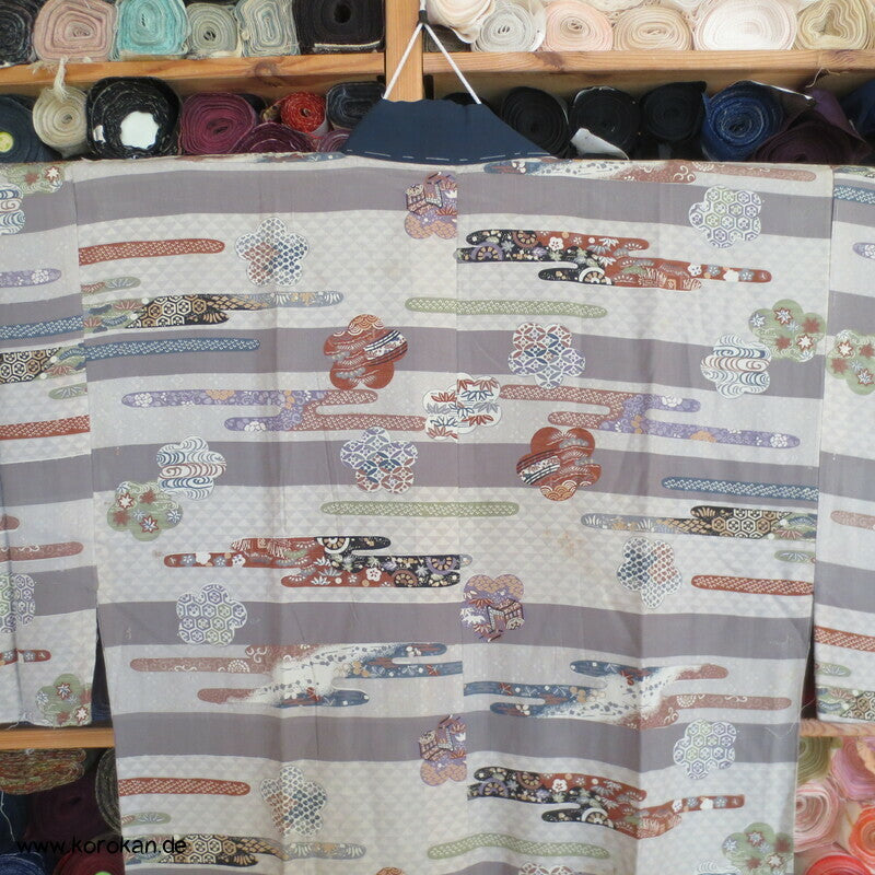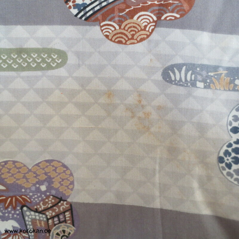 Vintage Männer Juban Unterkimono aus feinem weichen Woll Musselin bedruckt mit Egasumi Nebeln mit verschiedenen japanischen Motiven