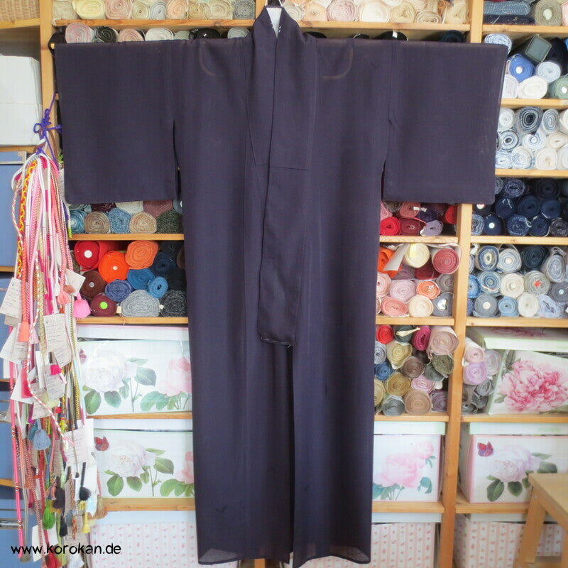 Vintage Sha Muster Drehergewebe Seide Kimono auberginge mit Schmetterlings Motiven, für den Sommer oder als Negligée