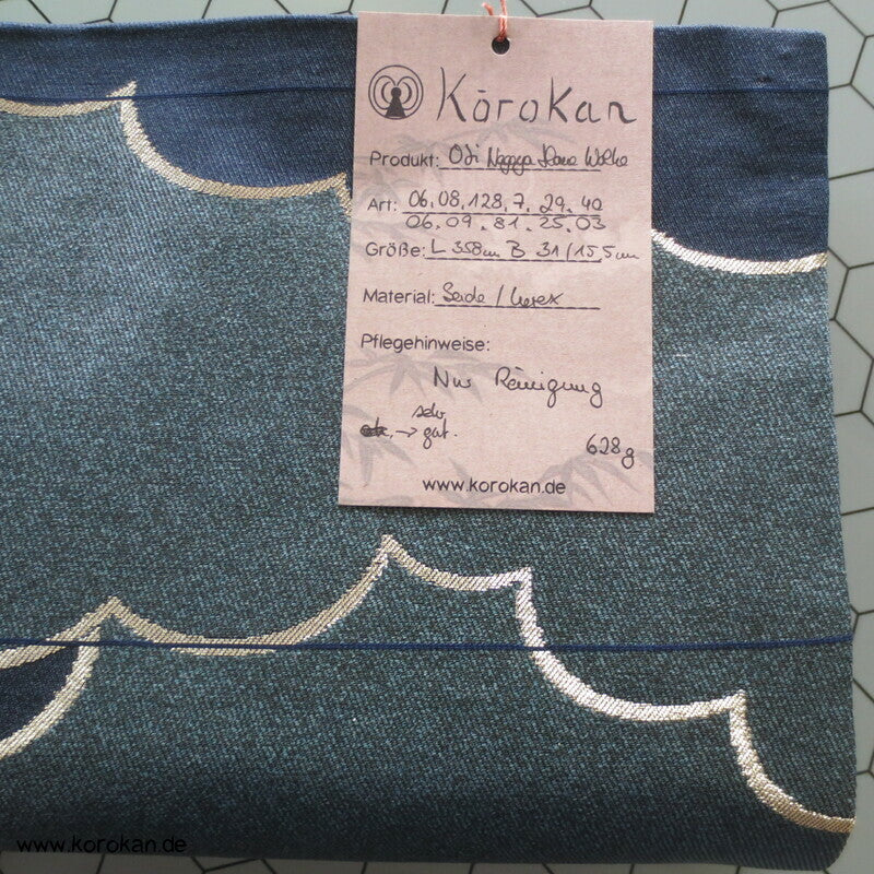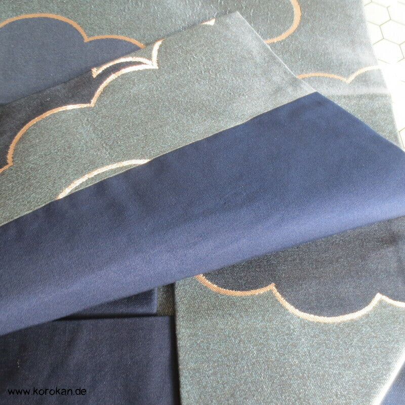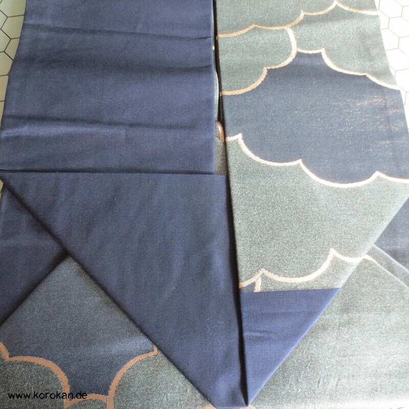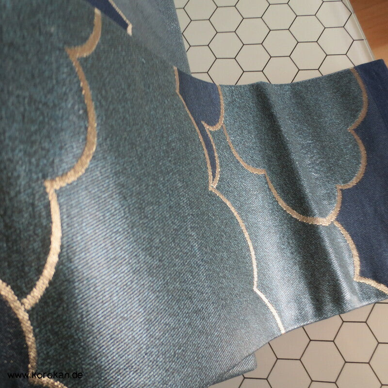 Vintage Seiden Nagoya Obi Wolken in blau mit silber Umrandungen