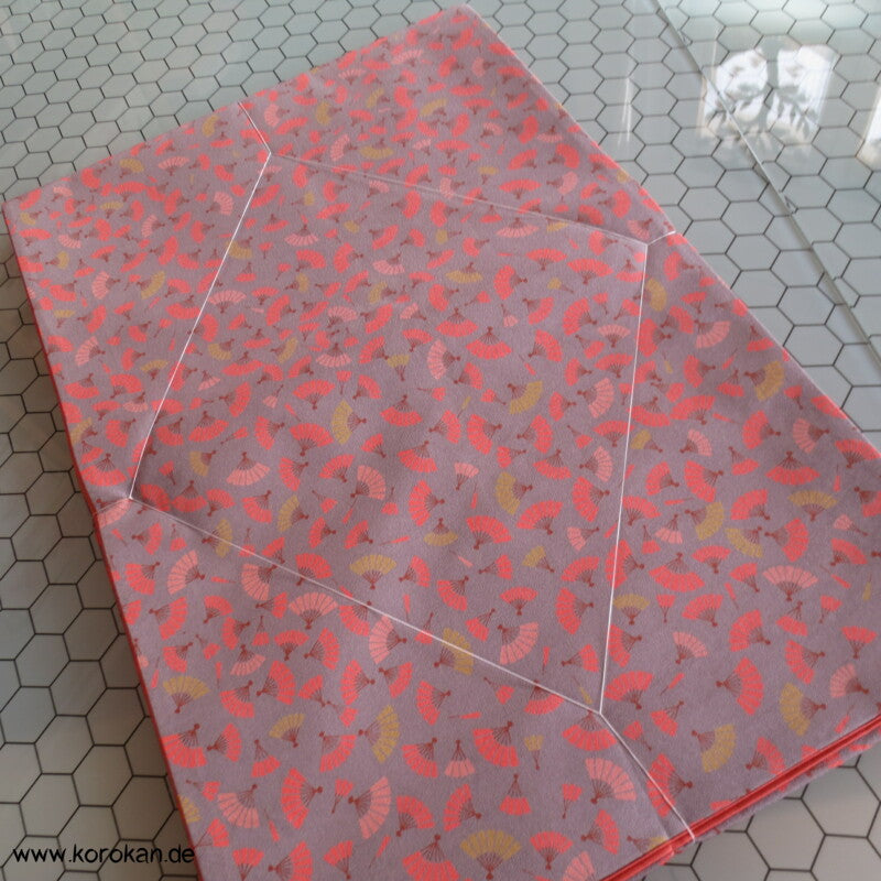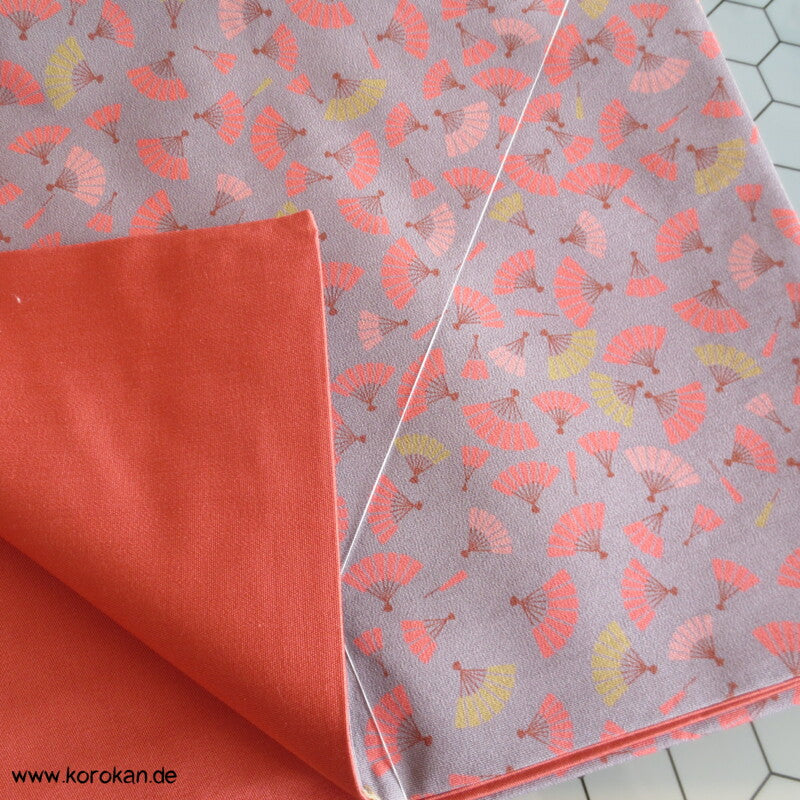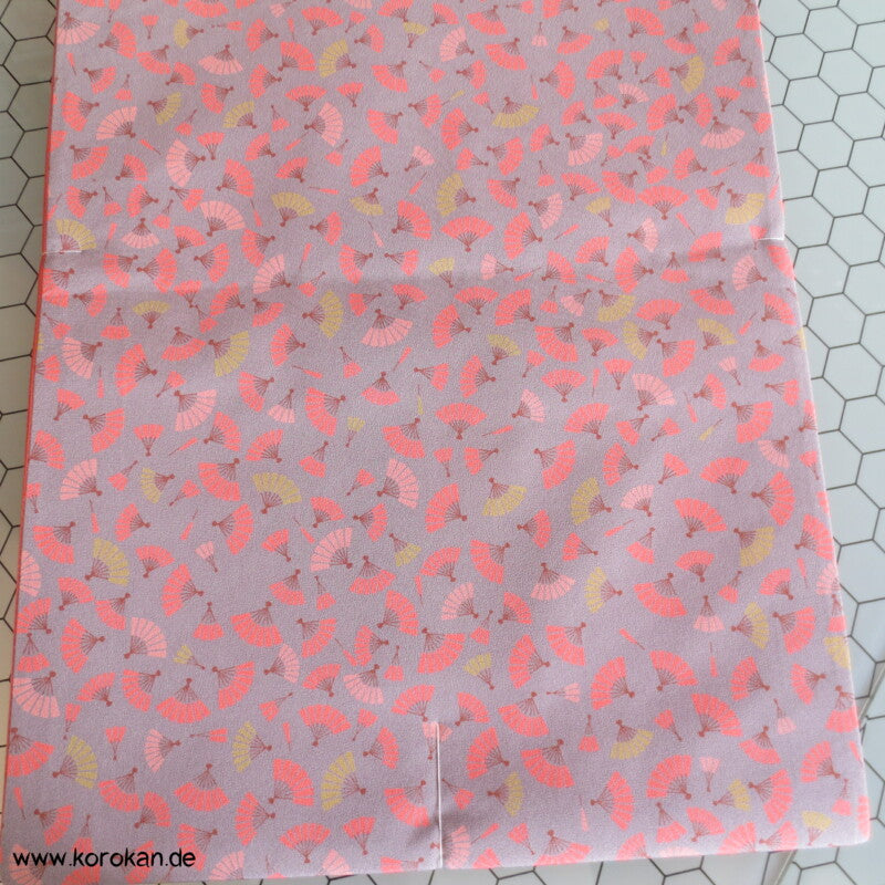 Fächer auf grauem Crepe Originalgehefteter Fukuro Obi