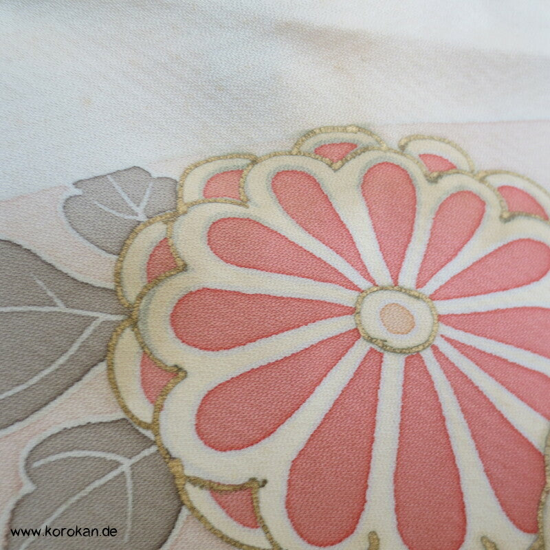 Fächer, Blüten Furisode, Seidendamast Karieba Kimono Stoff