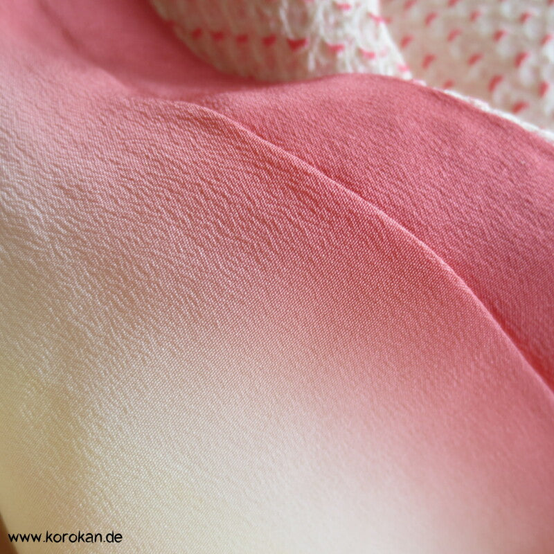 Oberes Futter helle Seide, unteres Hakkake Seidenfutter mit Bokashi Verlaufsrand.