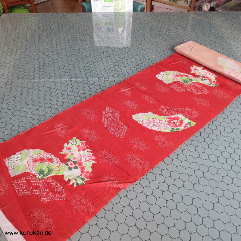 Fächer- und Pfingstrosen Habutai Kimono Seide