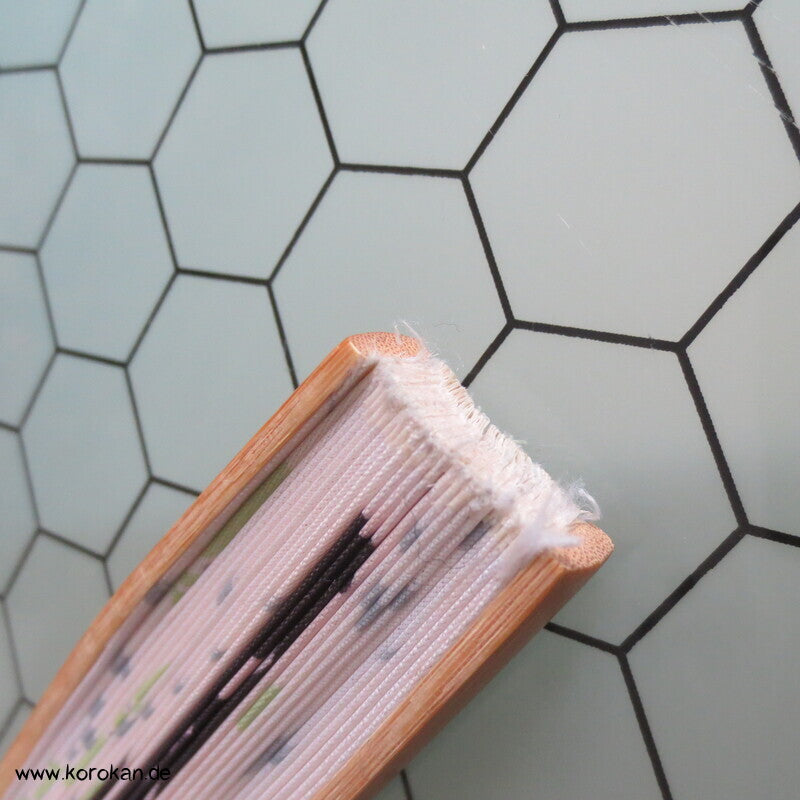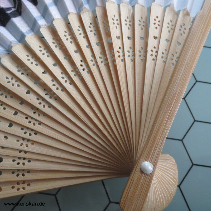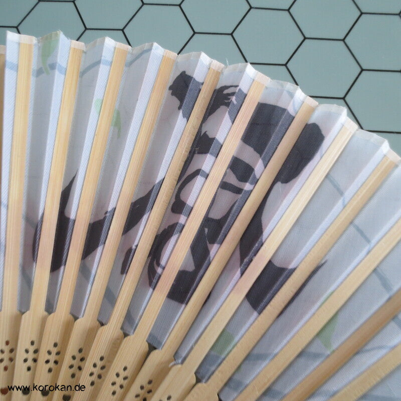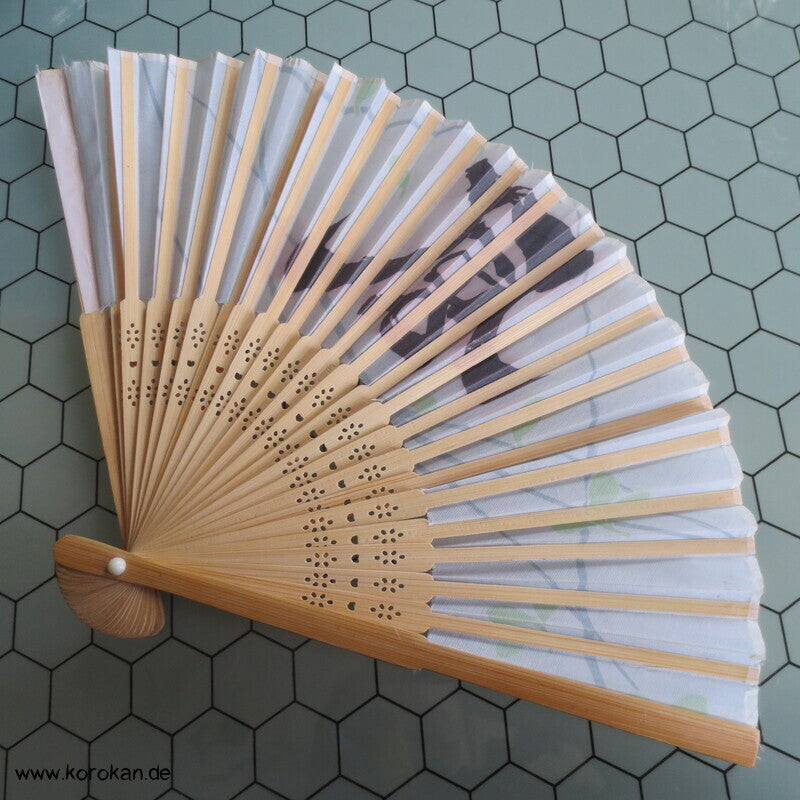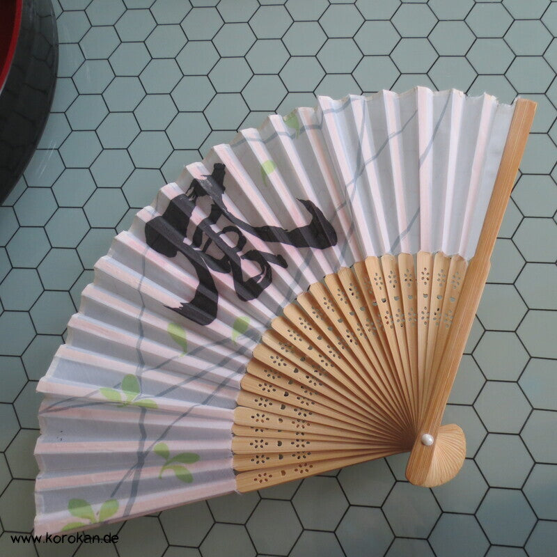 Vintage Jigami Klappfächer, (Synthetik) Stoff auf Bambusstreben, Kanji für Wind mit zarten Zweigen