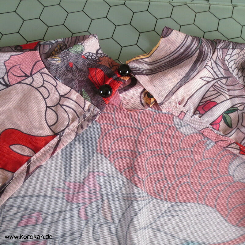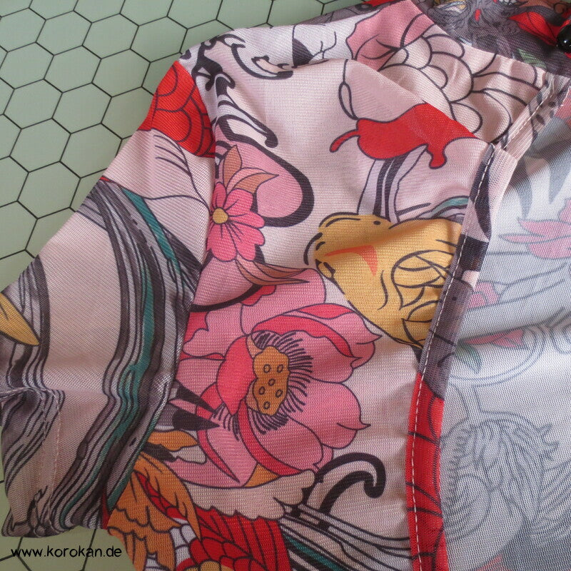 Fake Tattoo Bodysuit Drachen und Koi, leichter Rosa Touch und auf der Brust scheint ein Kugelschreiberstreifen zu sein - frisch gewaschen.