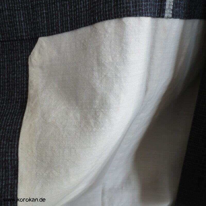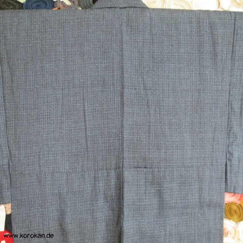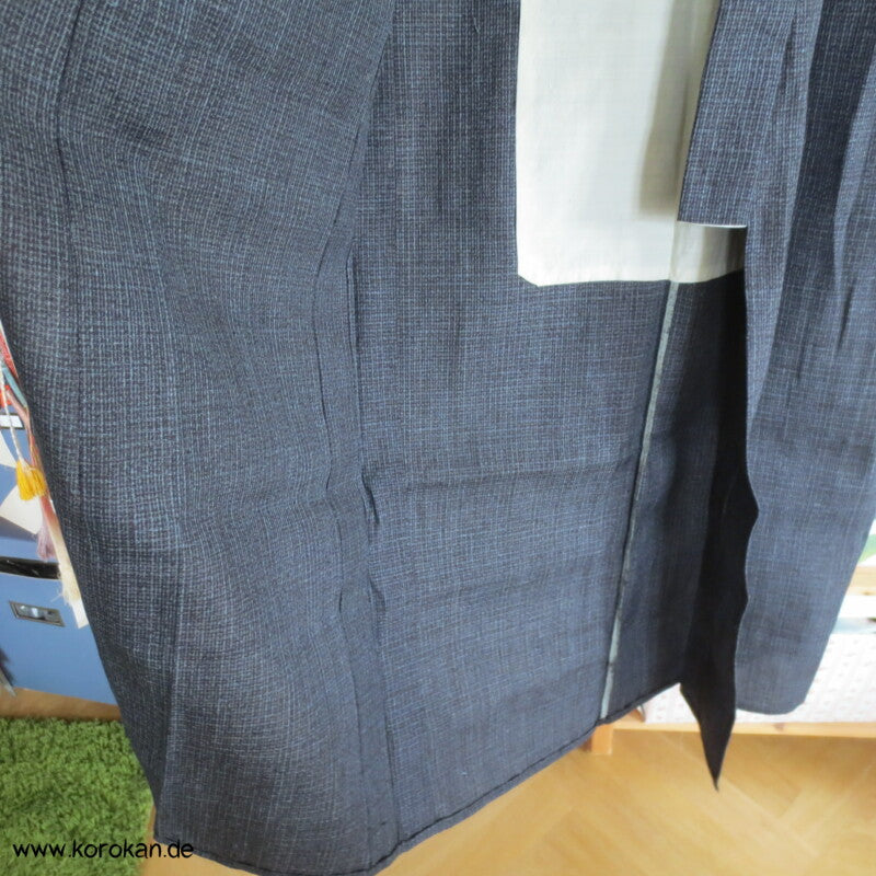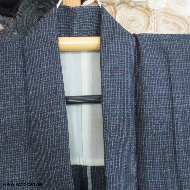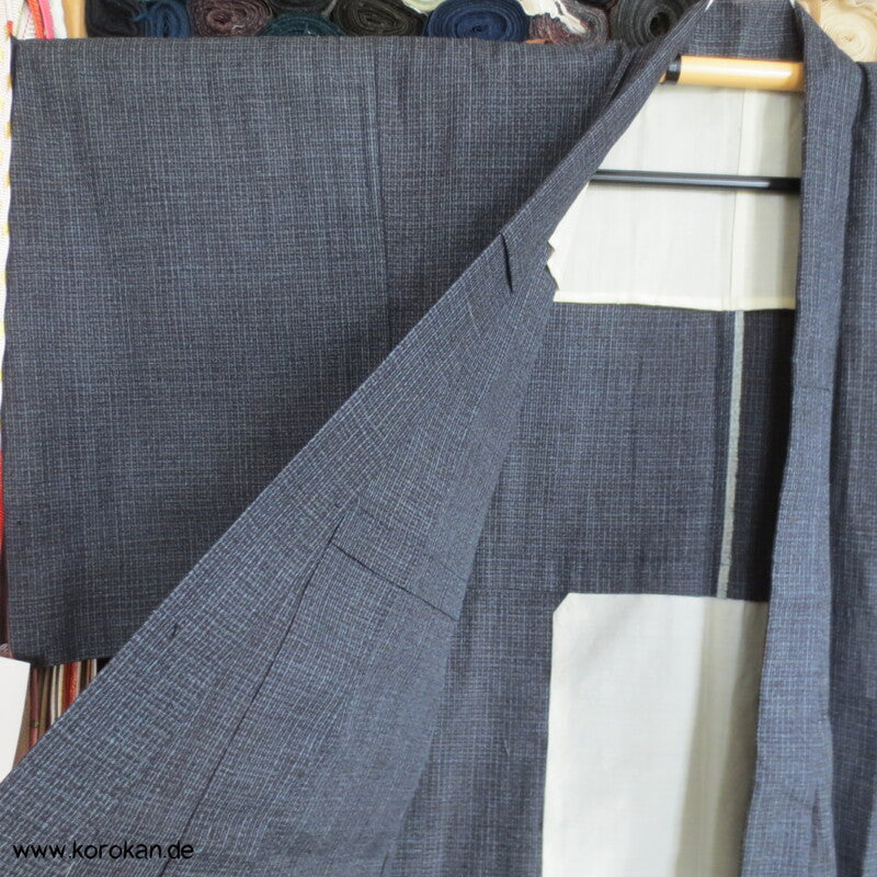 Vintage japanischer Männer Seide Tsumugi Hitoe Kimono feinkariertes Kasuri in dunkelblau natur