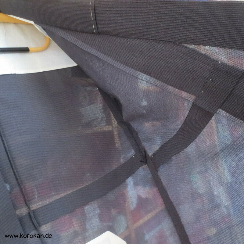 Vintage, eher antiker Männer karierter halbtransparenter Sha Seiden Hitoe Kimono ungefüttert, ganz leicht, etwas transparent, für den heißen Sommer.