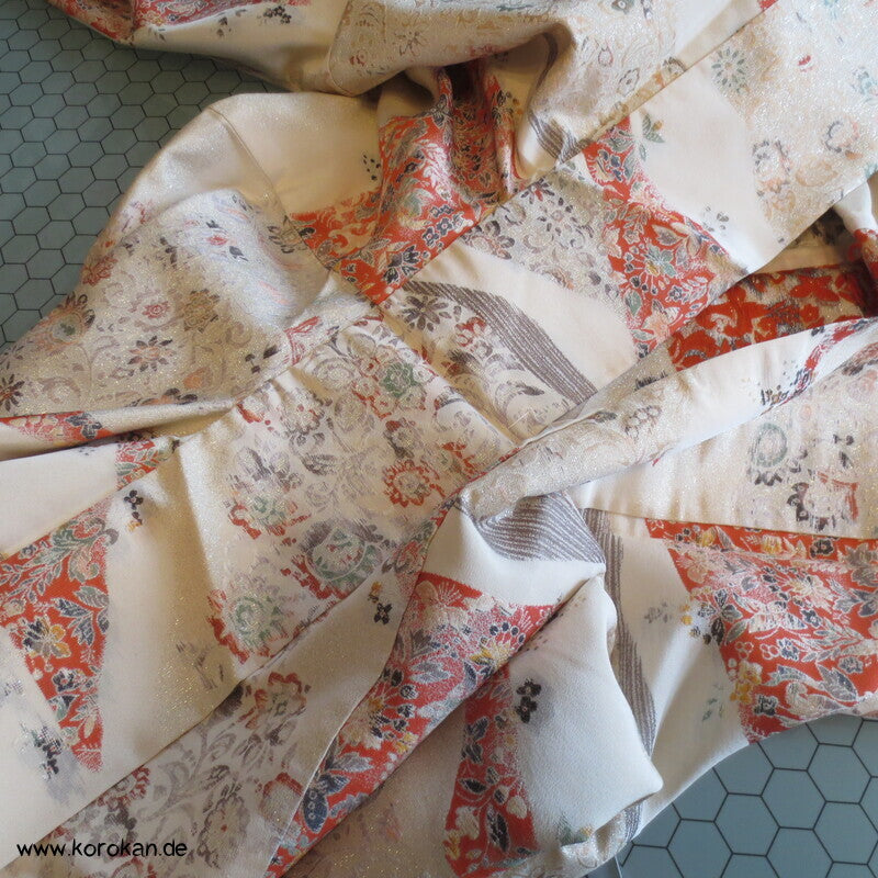 Antiker Hitoe Jacquard Blumenlandschaft mit vielfältigsten Mustern in rosa natur bunt silber Kimono, als Morgenmantel oder als Material