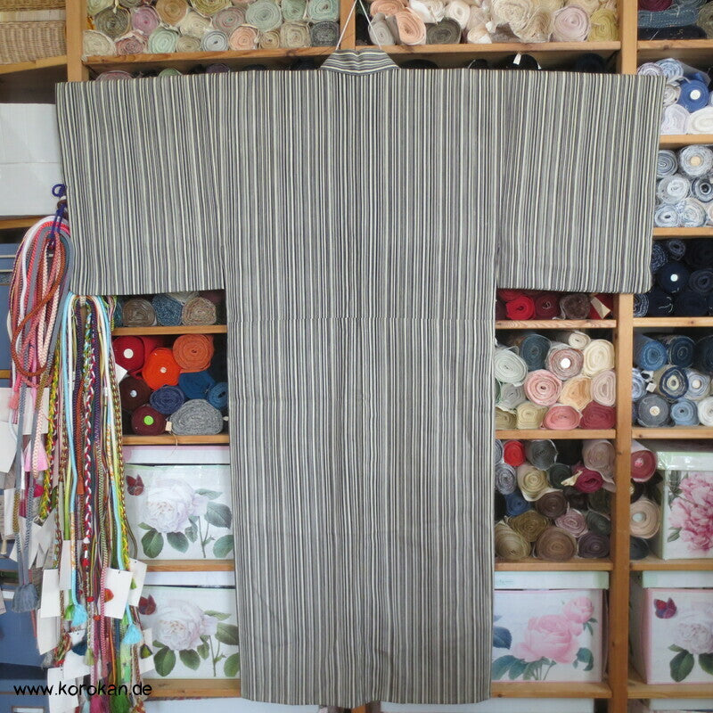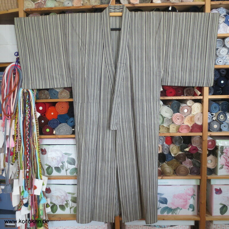 Vintage Hitoe ungefütterter Männer Kimono aus einer feinen gestreiften Seide