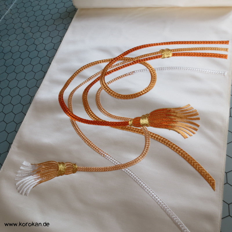 Vintage unbenutzter Tanmono für einen Obi, volle Stoffrolle Seidenjacquard / -brokat in Nagoya Kimonogürtel, Flechtbandstickerei auf Seide
