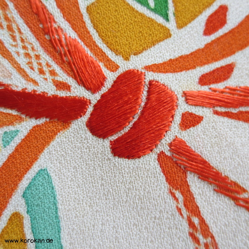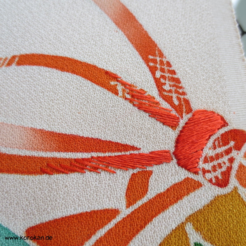 Flechtbänder, Handtrommel Tanmono, Teilstickerei auf Seidencrepesatin