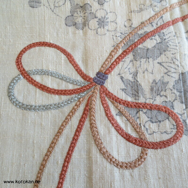 Flechtbandstickerei Hitoe ungefütterter Tsumugi Seiden Kimono, antik