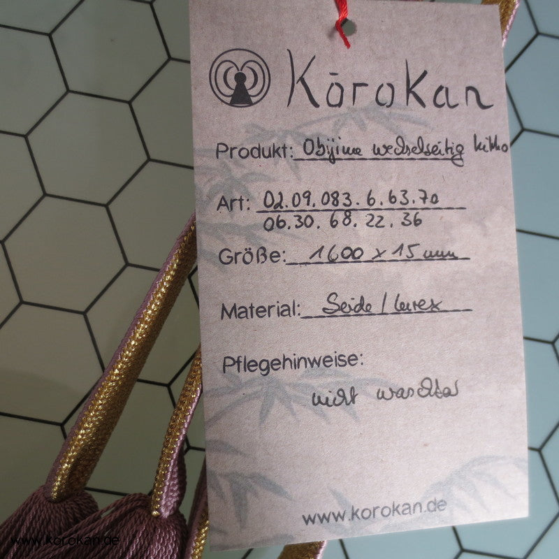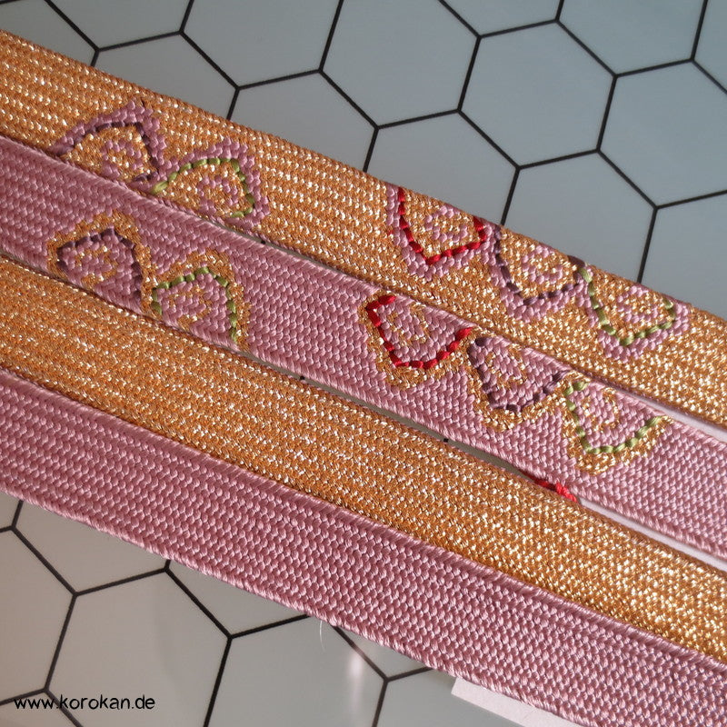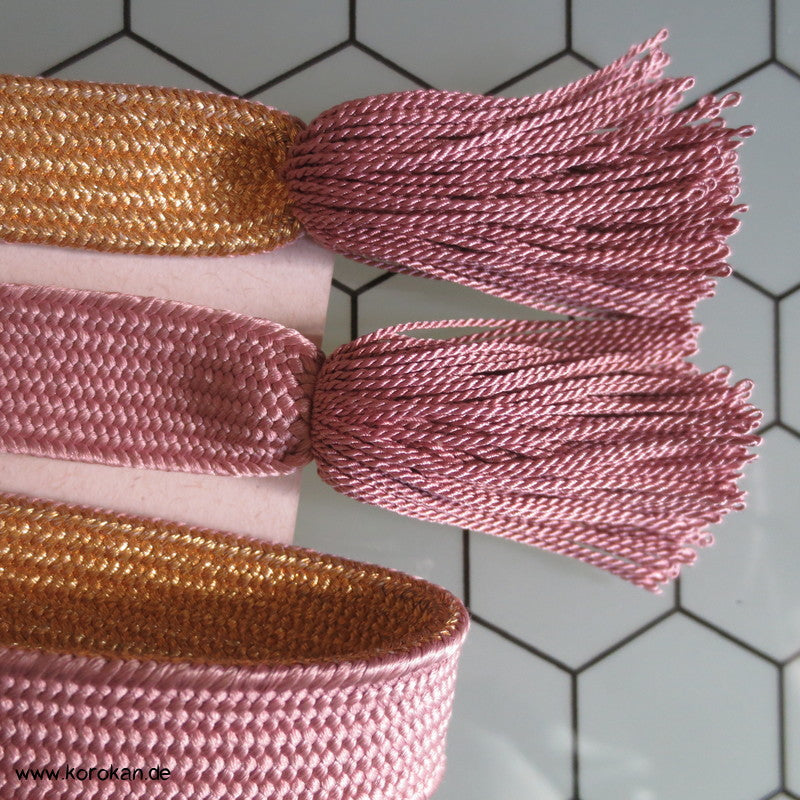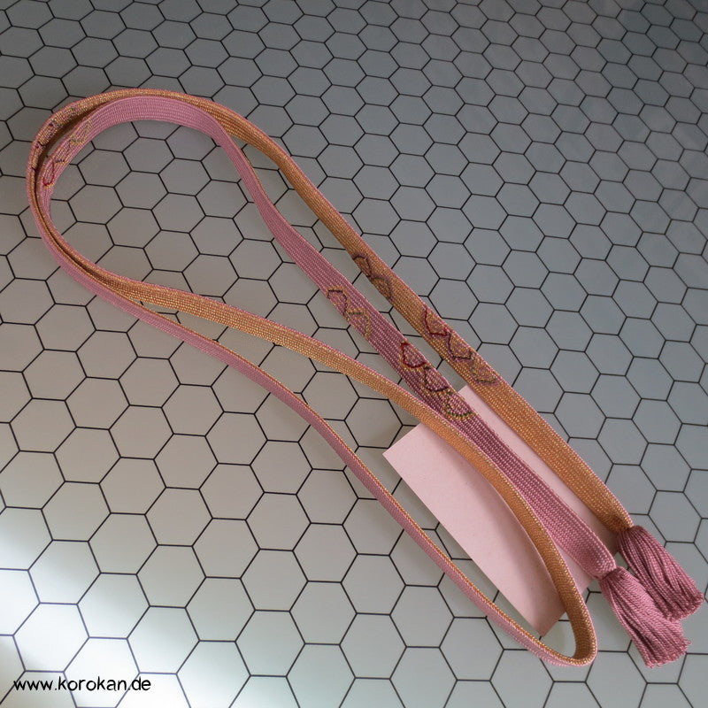flacher Obijime mit Farbverlauf in flieder altrosa mit Kikko wechselseitiger Flechtung mit gold.