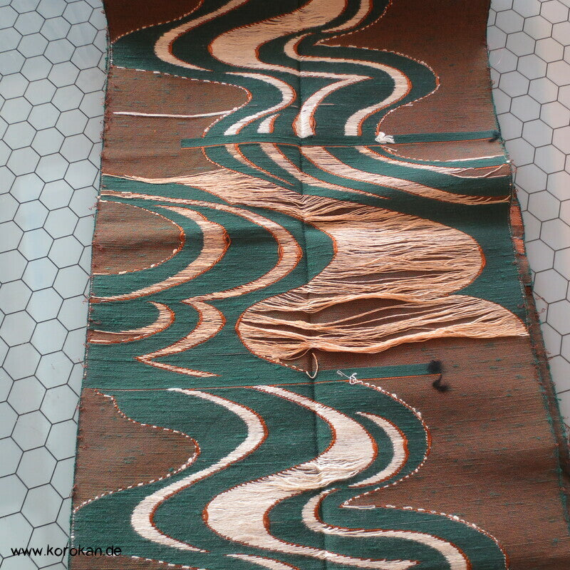 Fluss in beige grün auf braun Obi Seidenbrokat