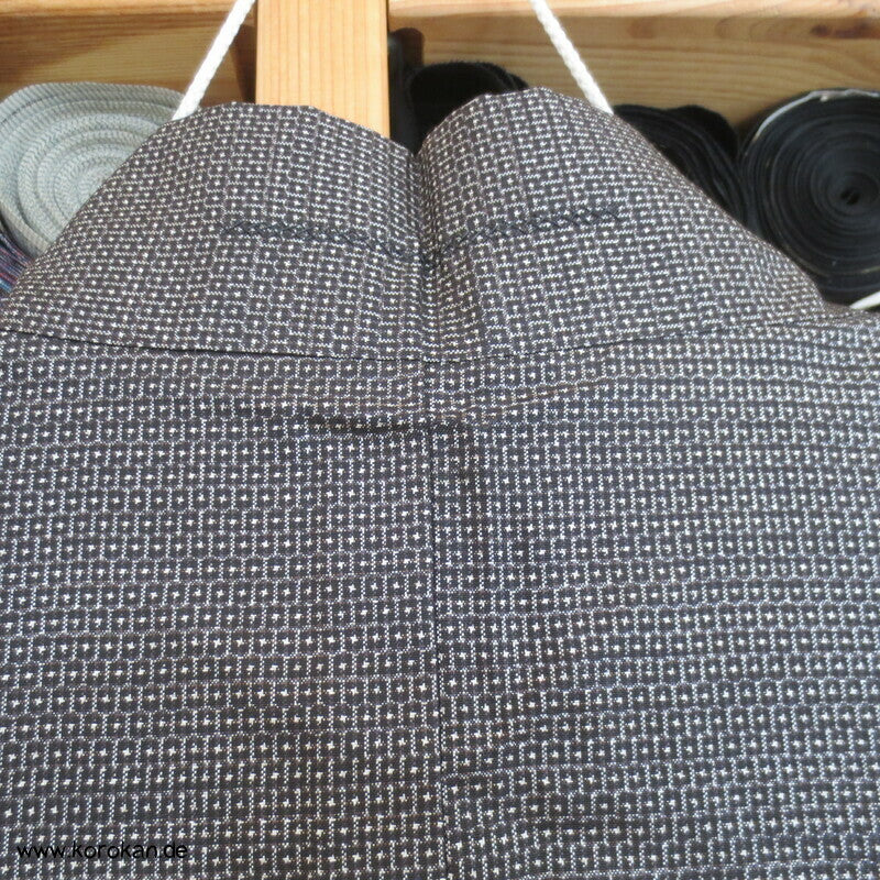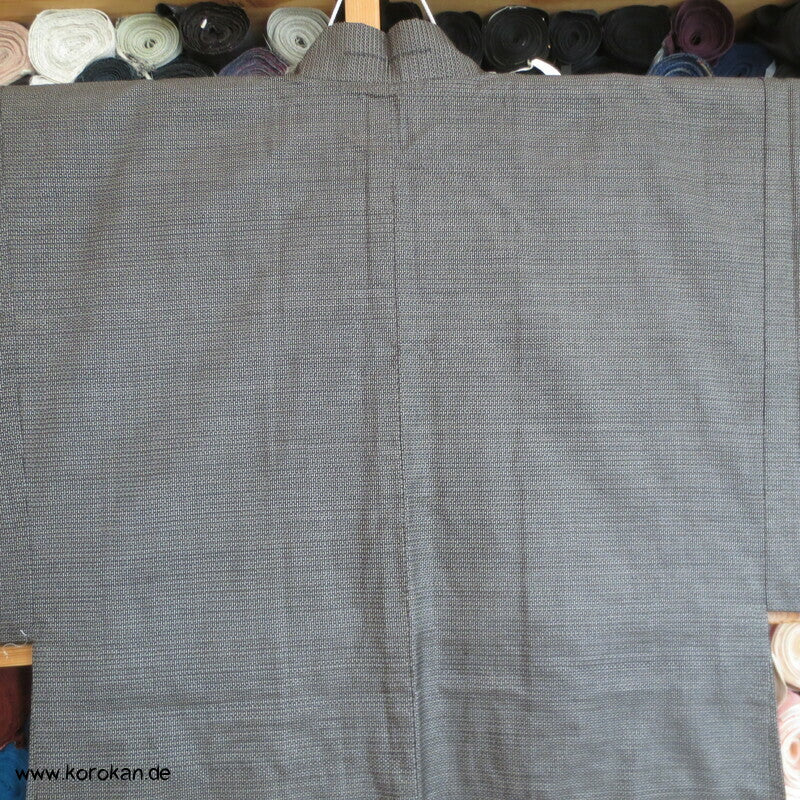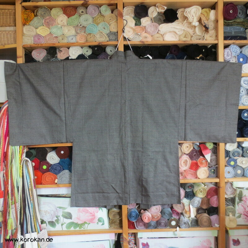 Vintage japanische Männer Haori aus schwarz - beige feiner Kasuri garngefärbter Kikko Tsumugi Seide mit Seiden Futter handgemalter See vor Fuji san
