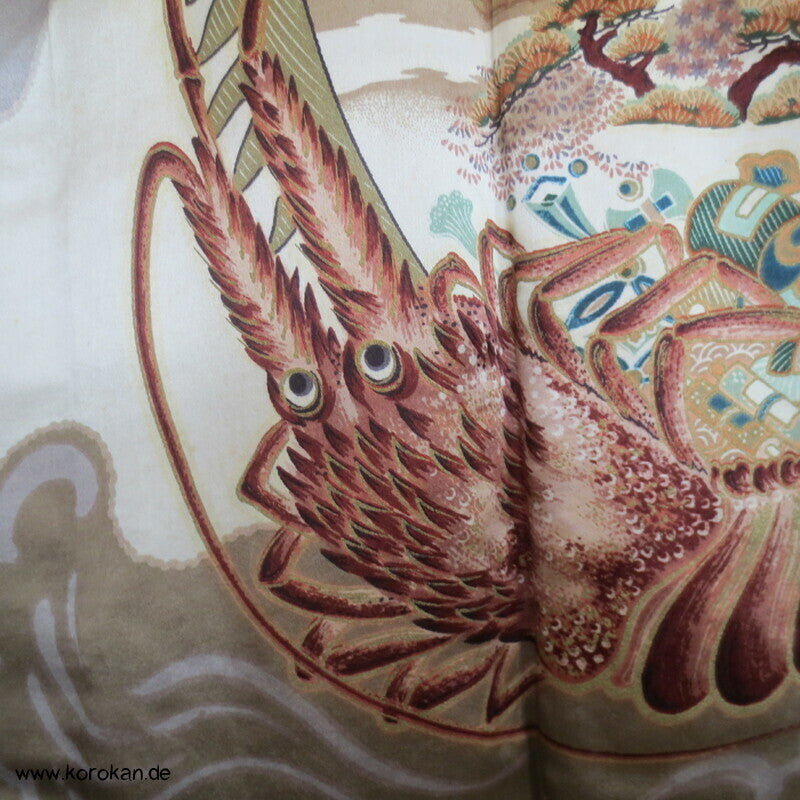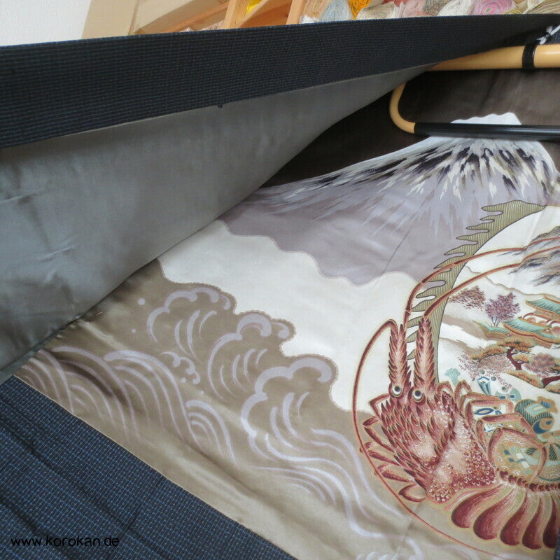 Fuji San, Ebikrabben Futter - Tsumugi Seiden Haori Kimono Jacke