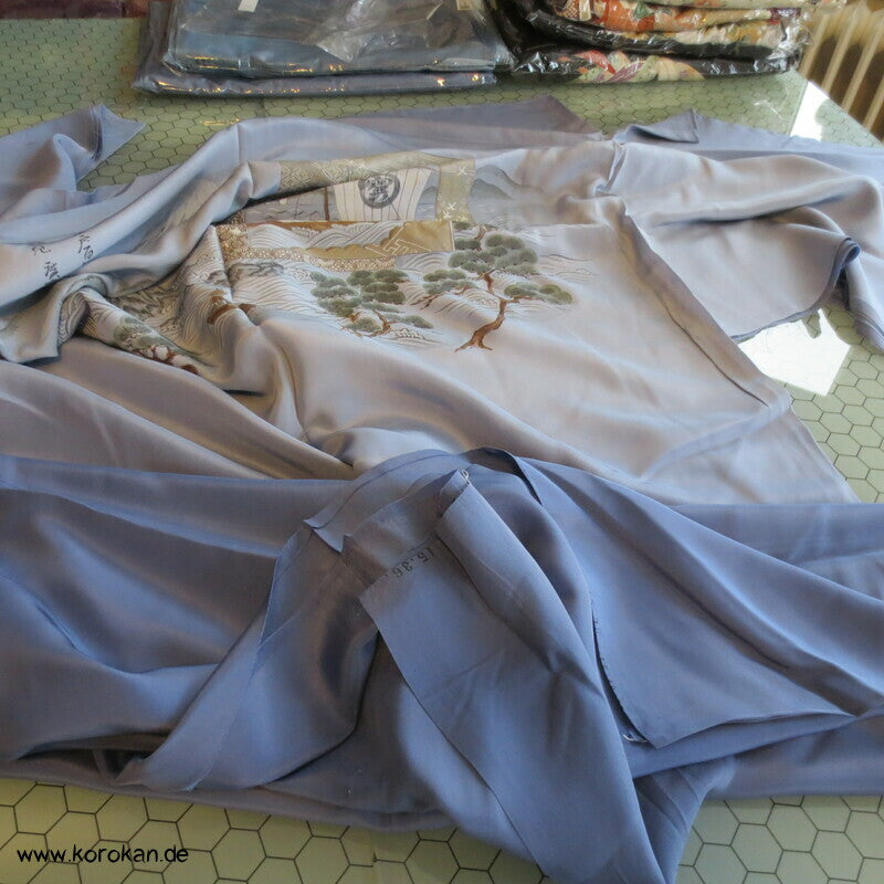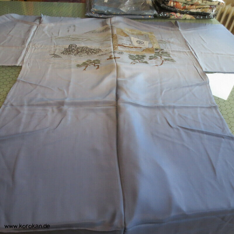 Vintage unbenutzter Karieba Männer Juban Kimono Honan Seiden Stoff, zugeschnitten, geheftet, nicht genäht. Neuer Stoff