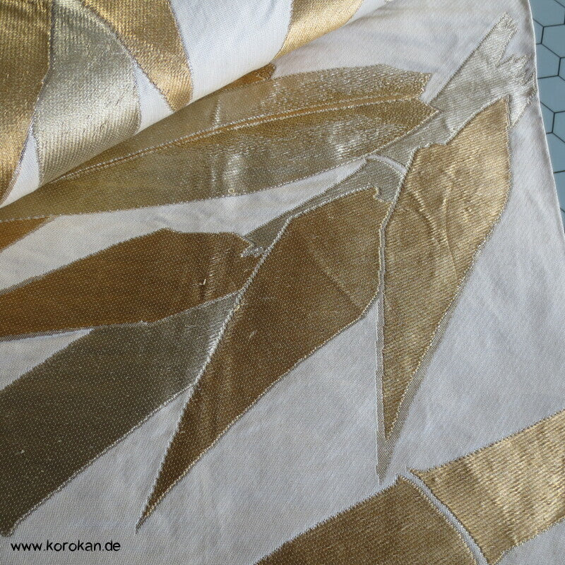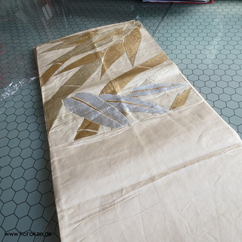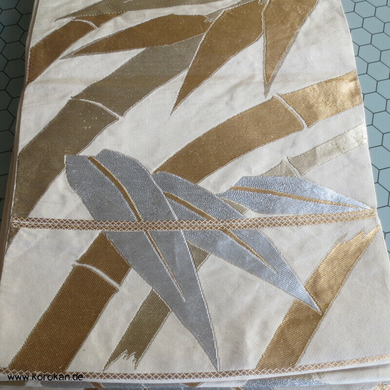 Vintage Fukuro Obi für Kimono Seidenbrokat goldener und silberner Bambus in beige