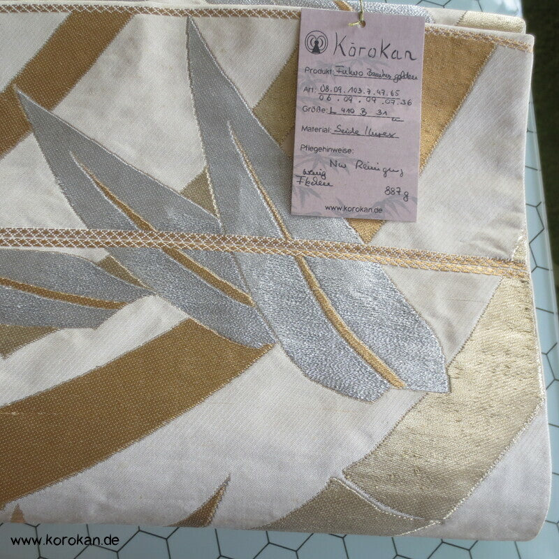 Fukuro Obi Seidenbrokat goldener und silberner Bambus