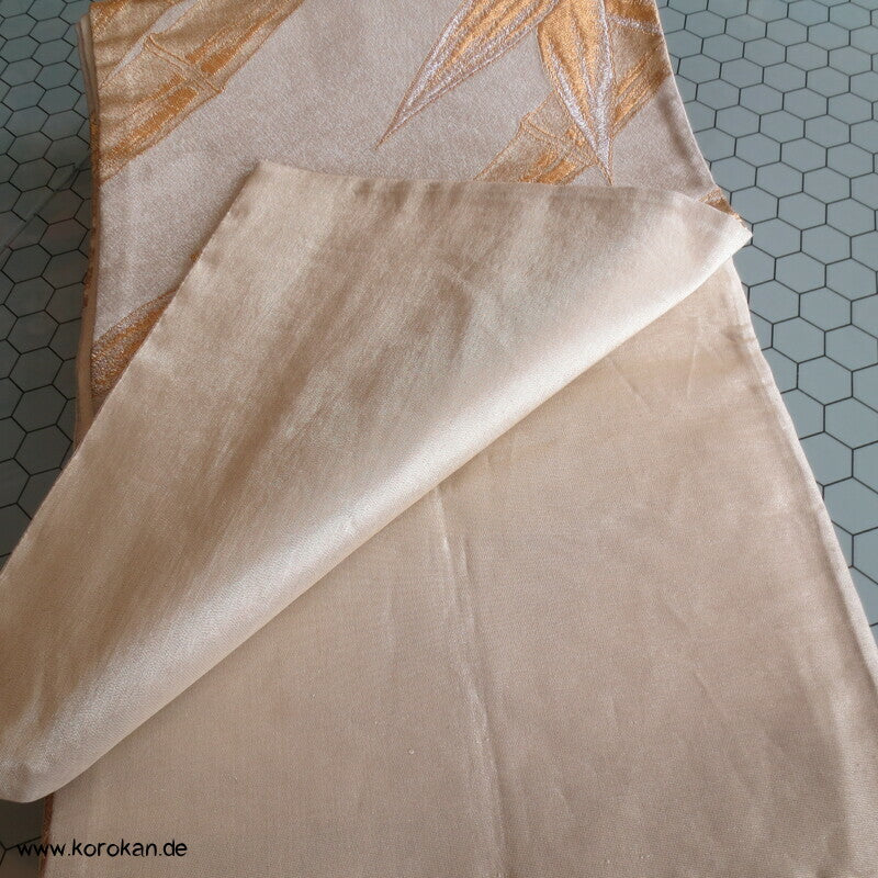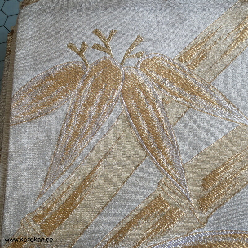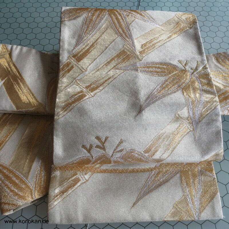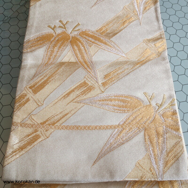 Vintage Fukuro Obi für Kimono Seidenbrokat goldener Bambus in beige