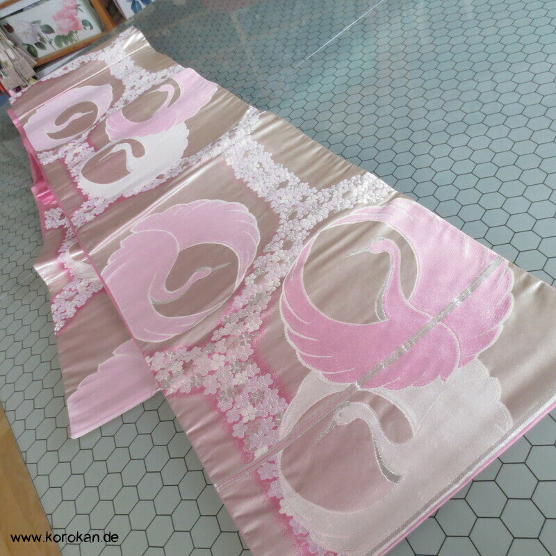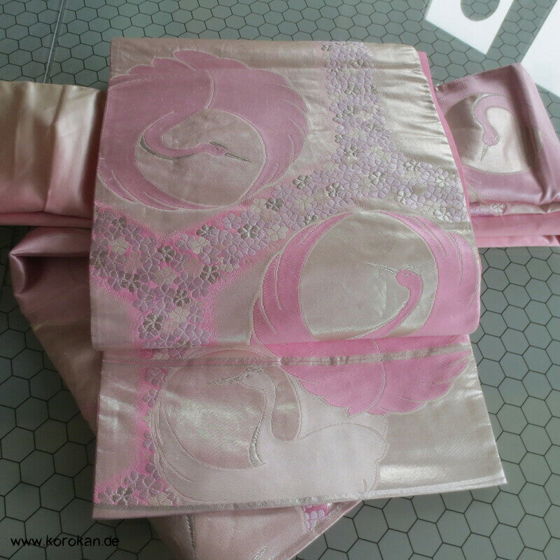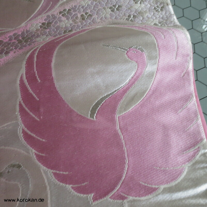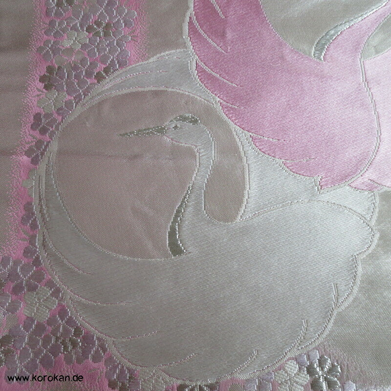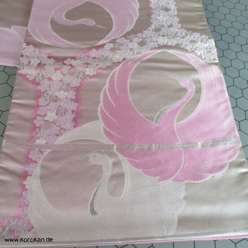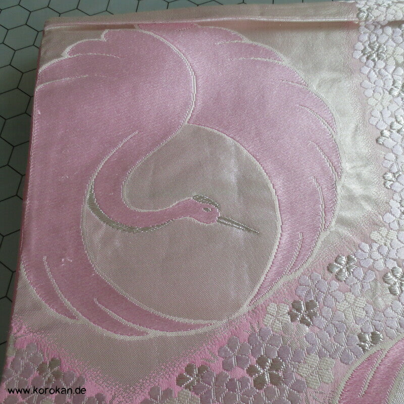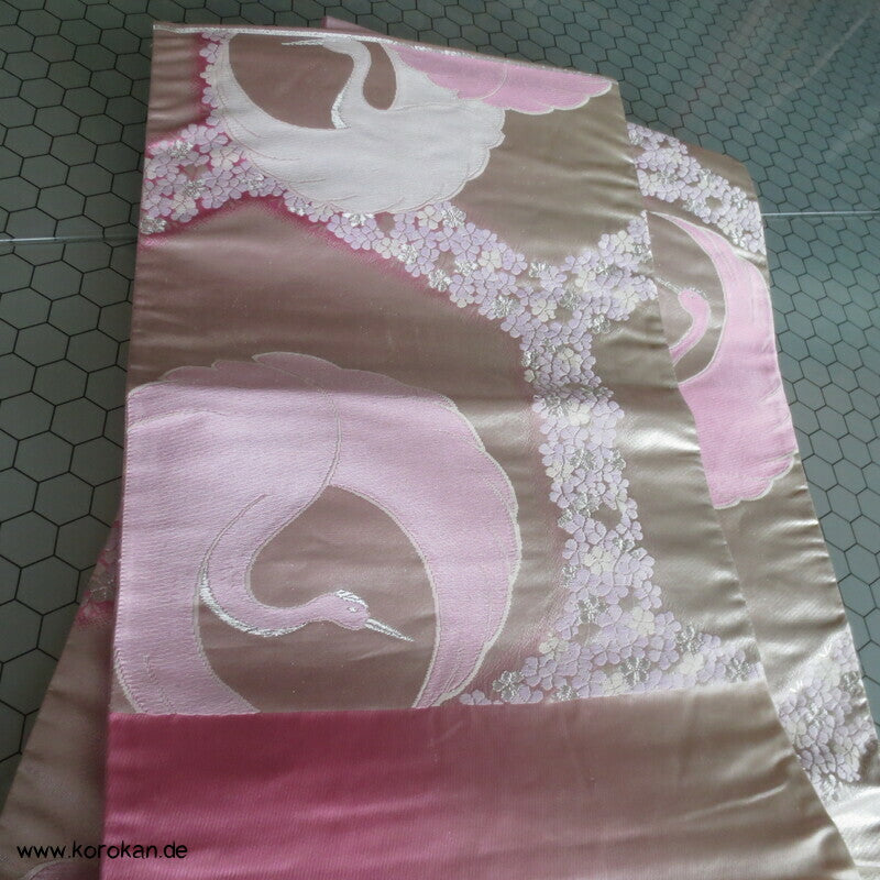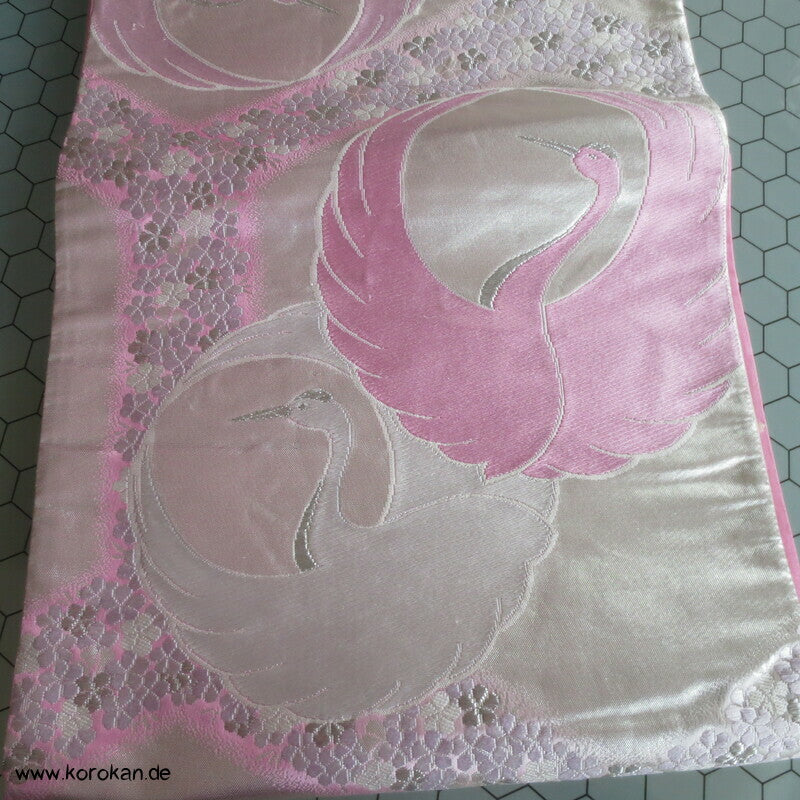 Vintage Fukuro Obi für Kimono Seidenbrokat Kraniche
