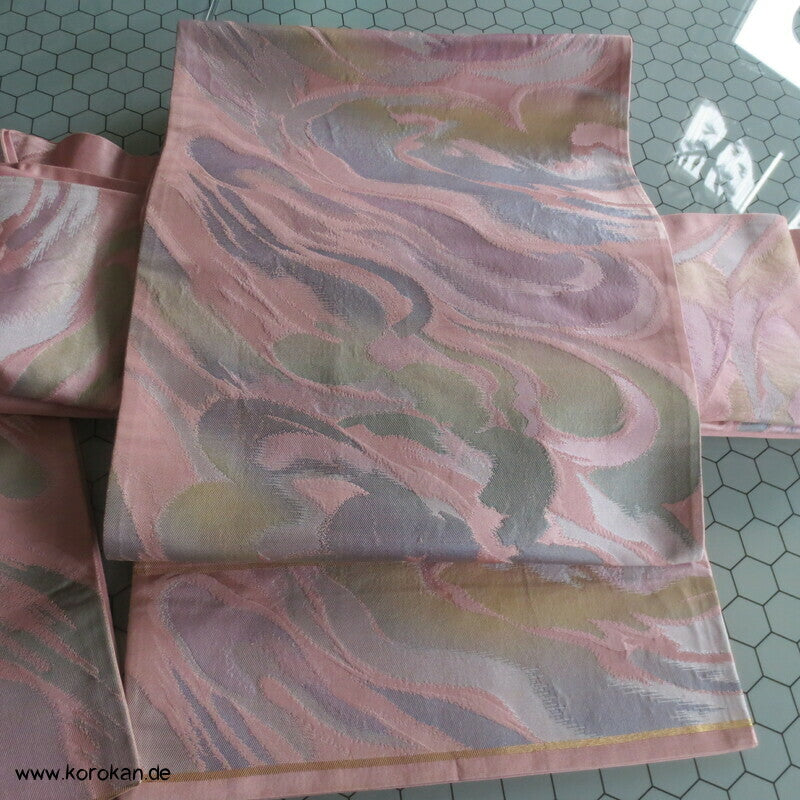 Fukuro Obi Seidenbrokat pastellige Wellen