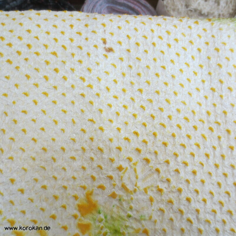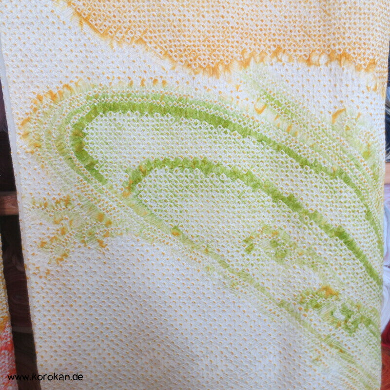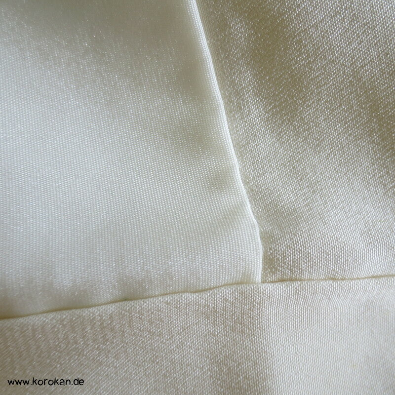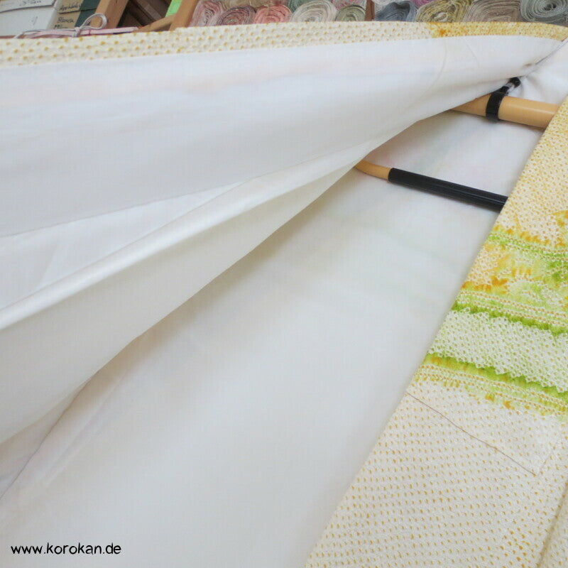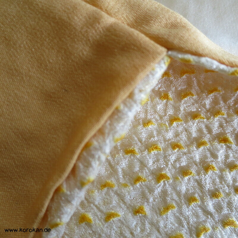 Oberes Futter helle Seide, unteres Hakkake Seidenfutter mit sonnengelbem Farbrand.