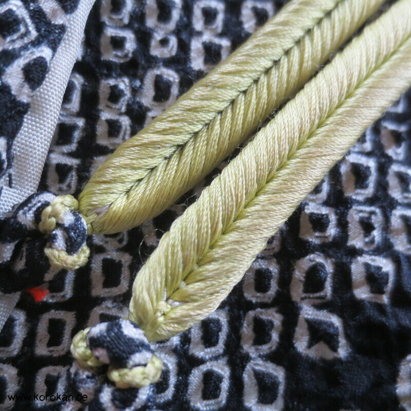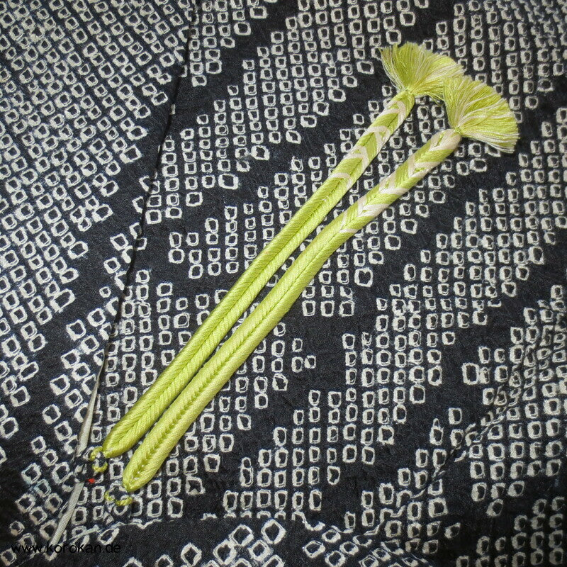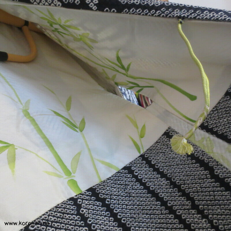 Vintage Haori Kimono Jacke Full Shibori Seide mit Bambusmotiv, oberem Futter feine Damast Seide mit Bambusmotiven in hellgrün und hellgrünem Himo
