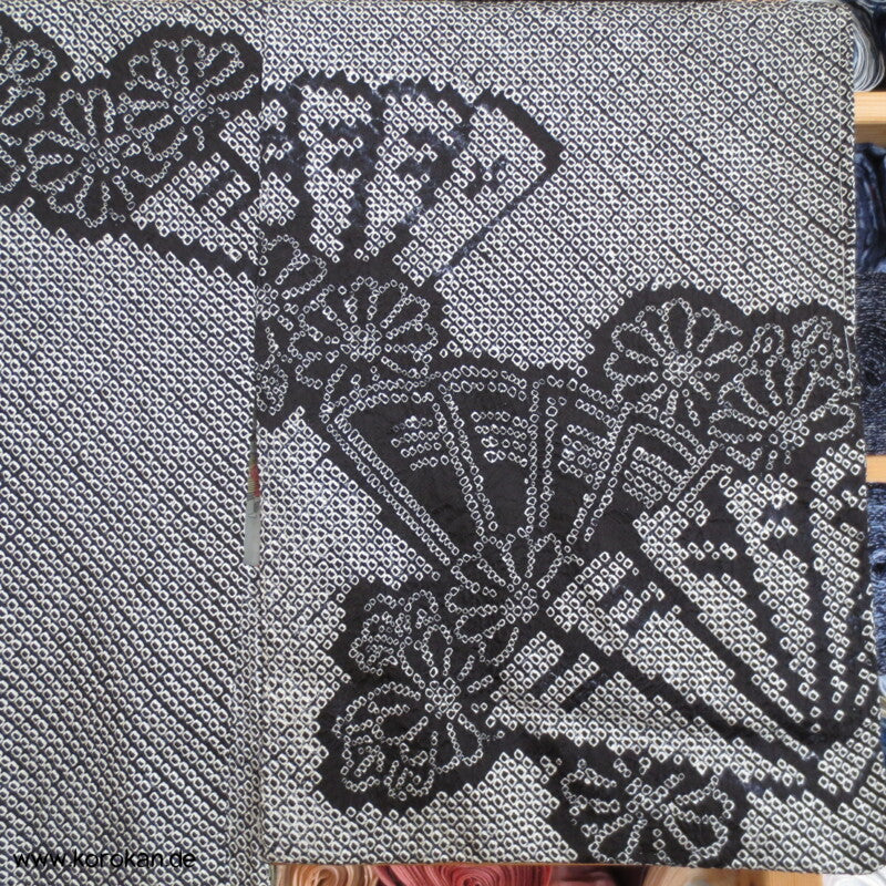 Full Shibori Fächer Seidendamast Haori Kimono Jacke