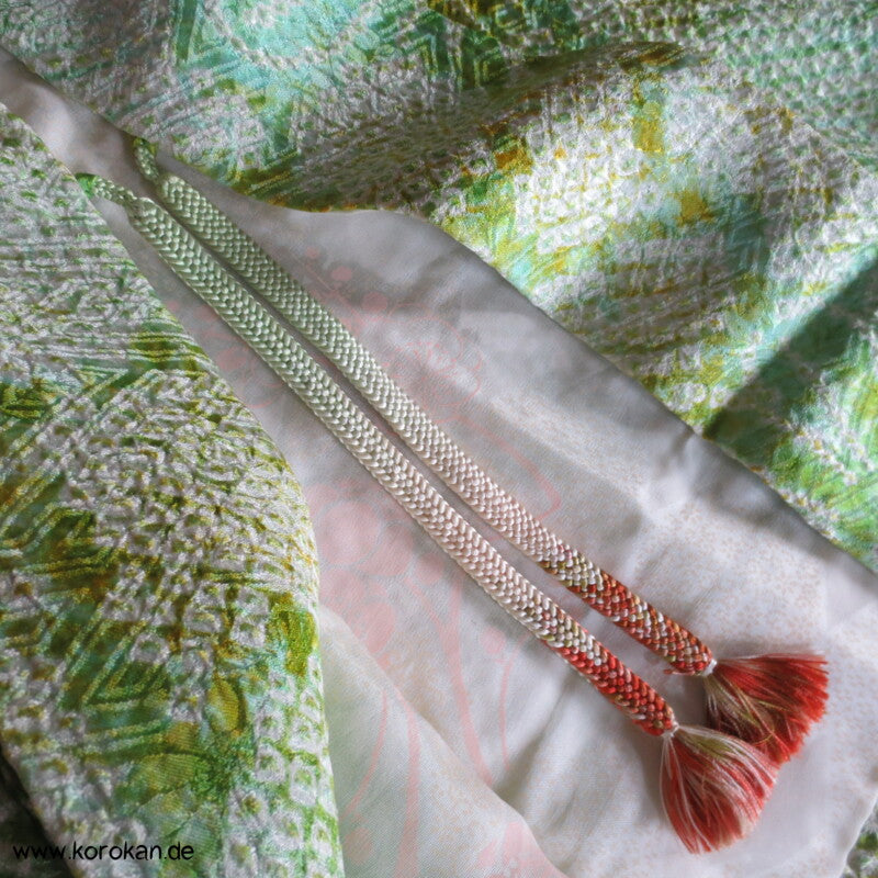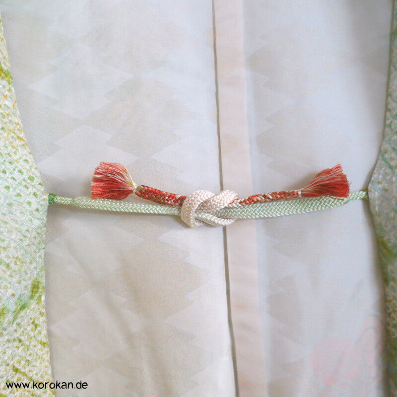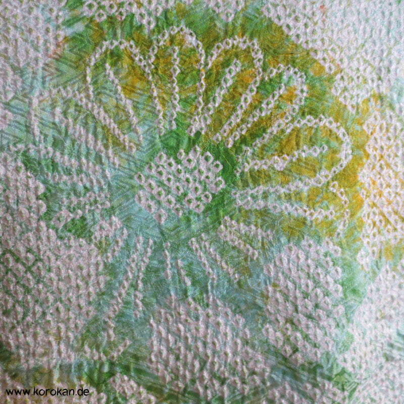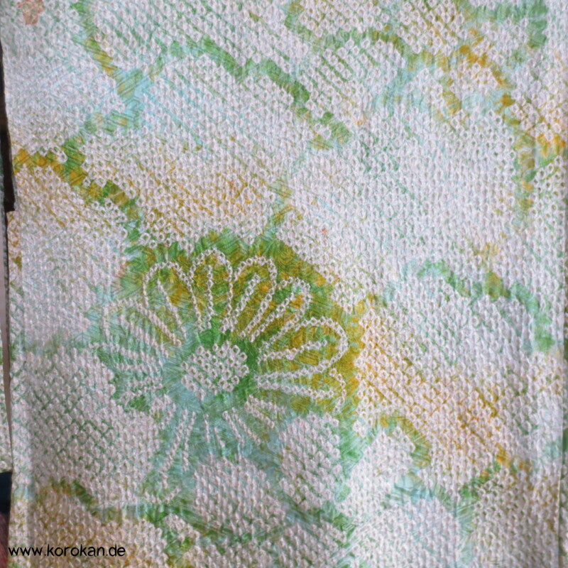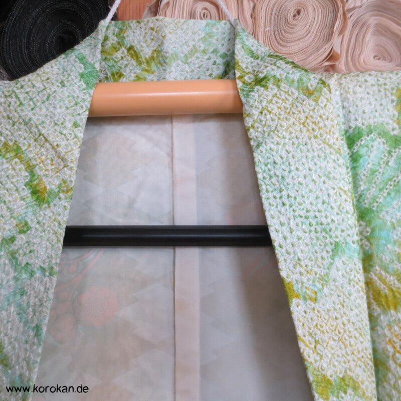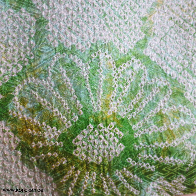 Full Shibori hellgrüne Blüten Seidendamast Haori Kimonojacke mit Himo