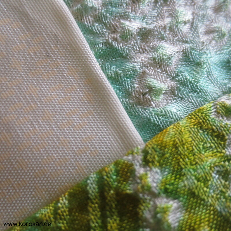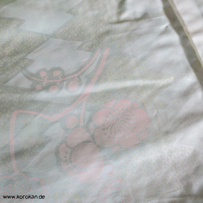 japanische Vintage Haori Kimono Jacke Full Shibori Blumen Seidendamast, oberem Futter mit Blumendruck pastell auf Seidentaft, mit sehr feinen zweifarbigen Farbverlauf Himo