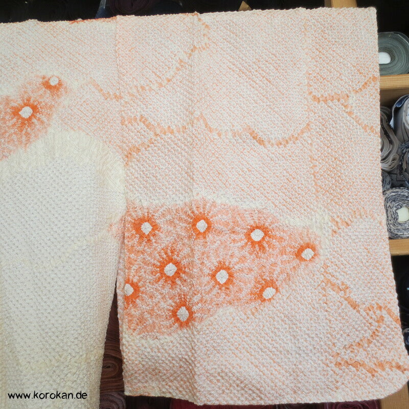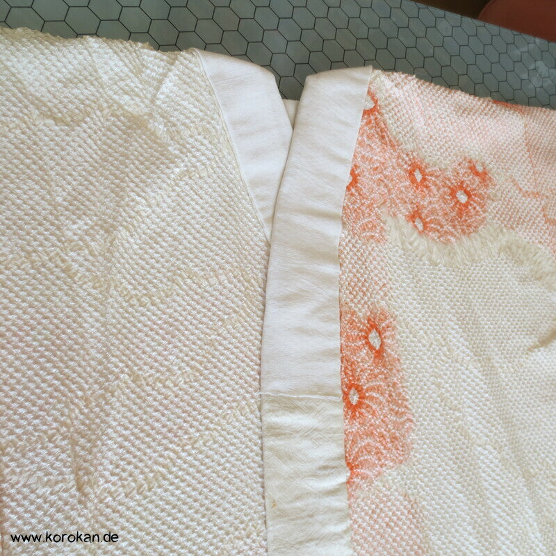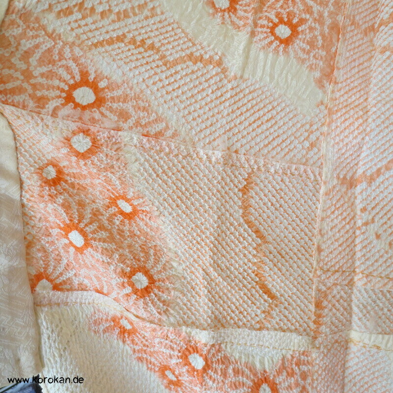 Vintage, eher antiker homemade Juban Unter Kimono Full Shibori Blüten Seidendamast, Han Eri Seidendamast