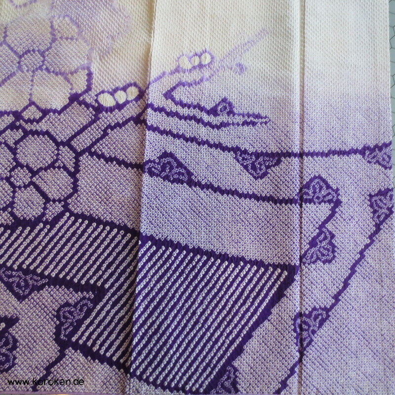 Oberes Futter helle Seide, unteres Hakkake Seidenfutter mit lila Farbrand.
