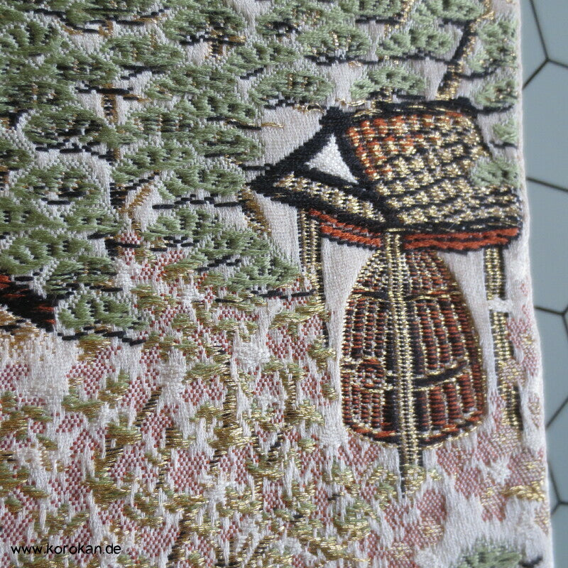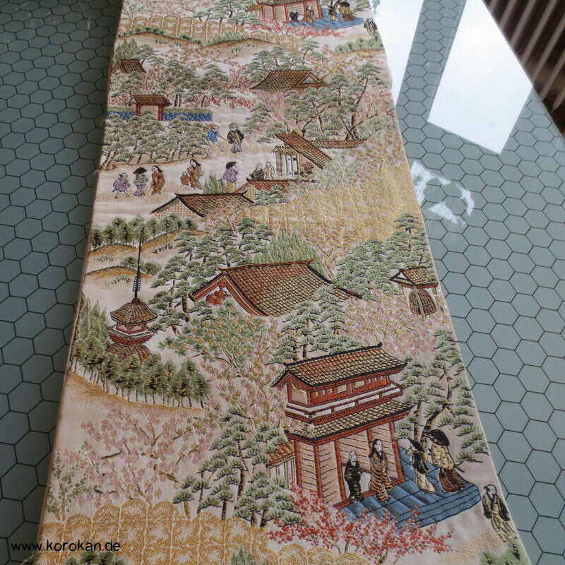 Gartenlandschaftsszene Fukuro Obi Seidenbrokat Kimonogürtel