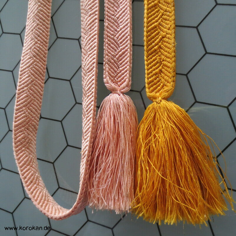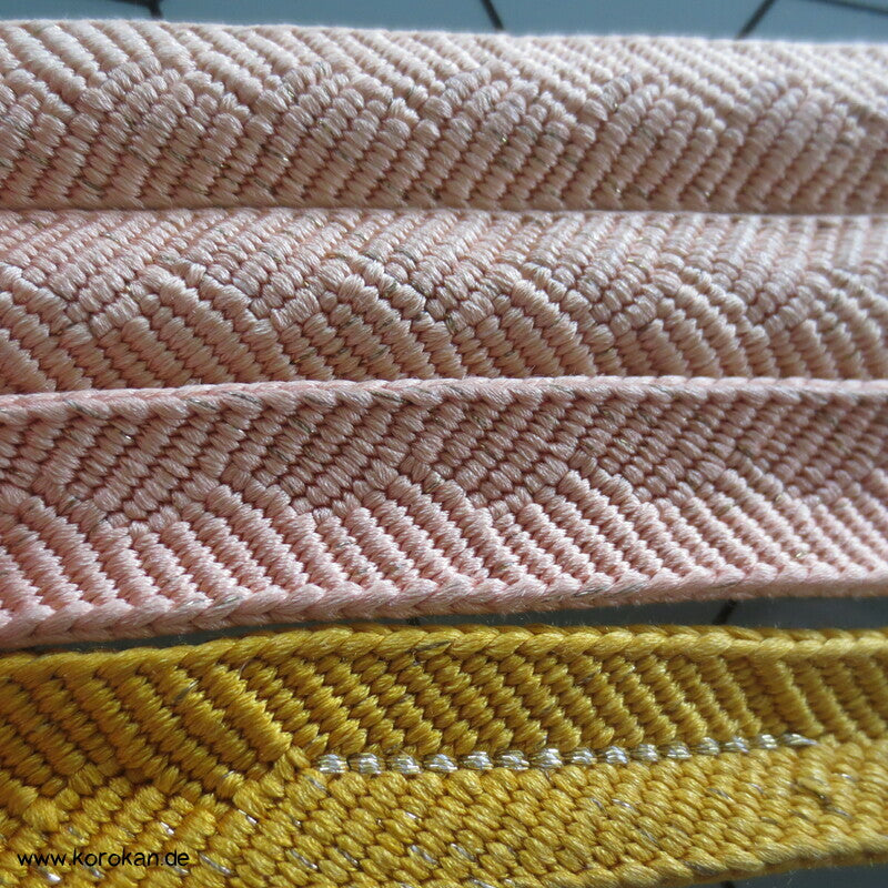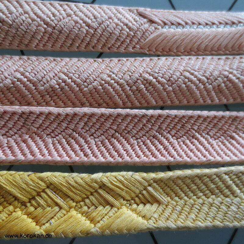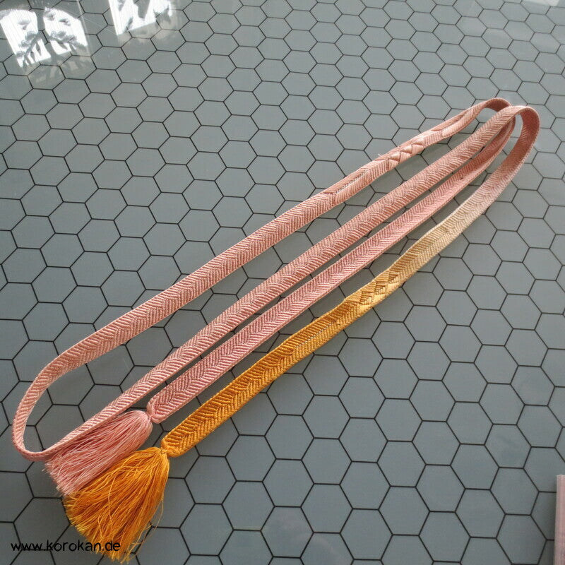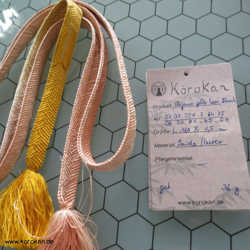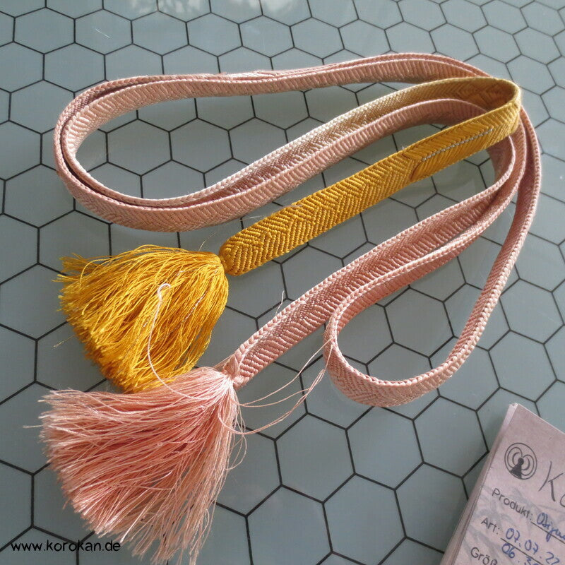 flacher Obijime mit Farbverlauf Koi gelb blush mit zart eingeflochtenen Silberfäden